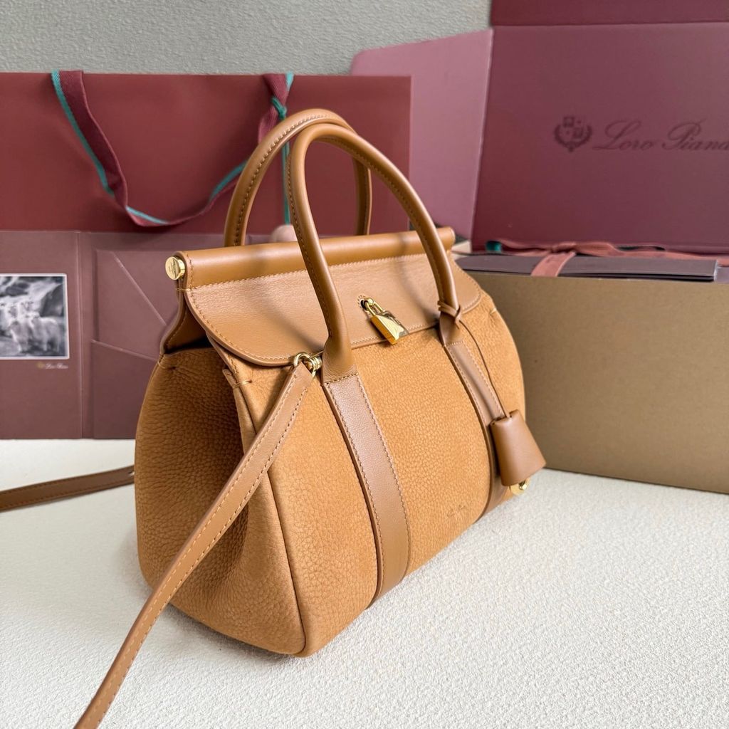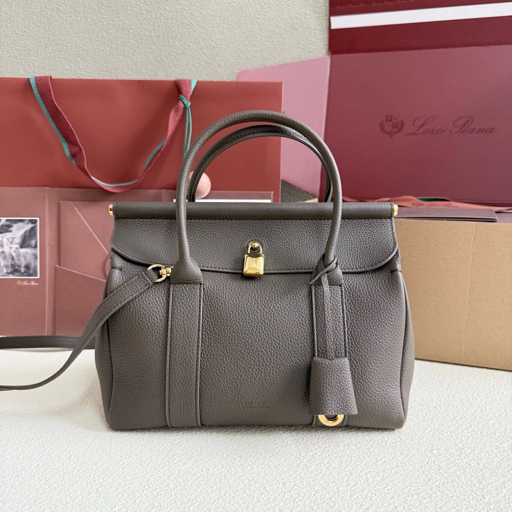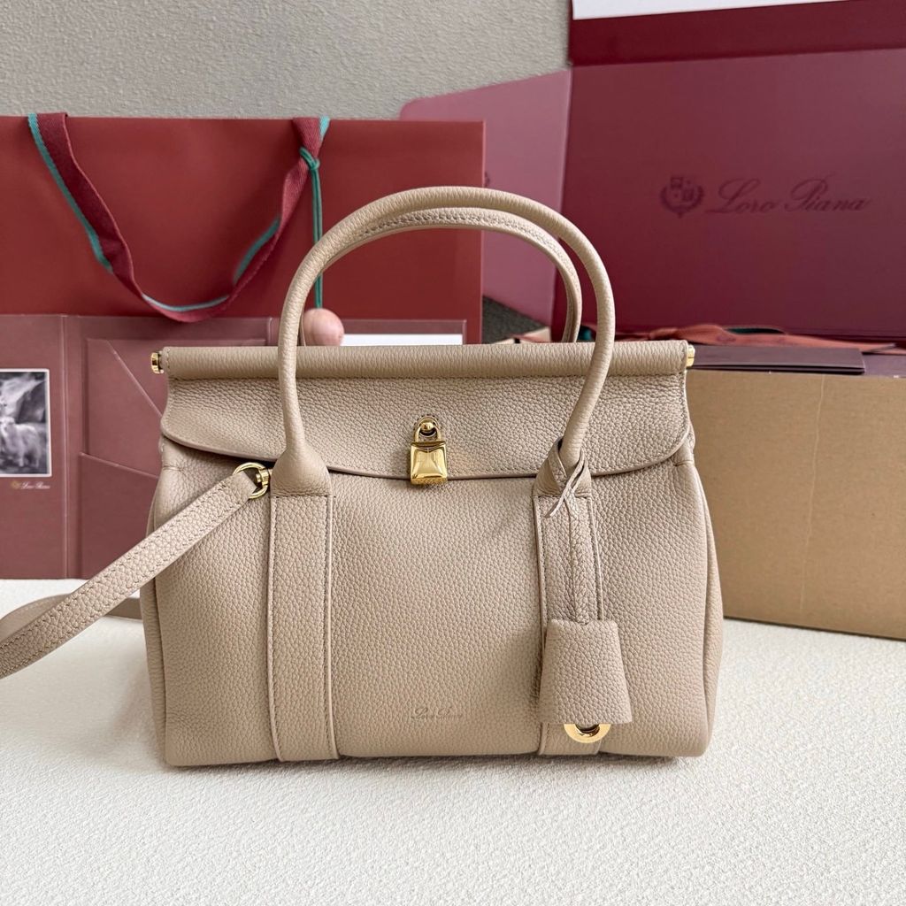 TÚI XÁCH NỮ LP* TOP-HANDLE DA HẠT TAUPE, KHÓA MẠ VÀNG 25cm 6500k (HÀNG ORDER QUỐC TẾ)