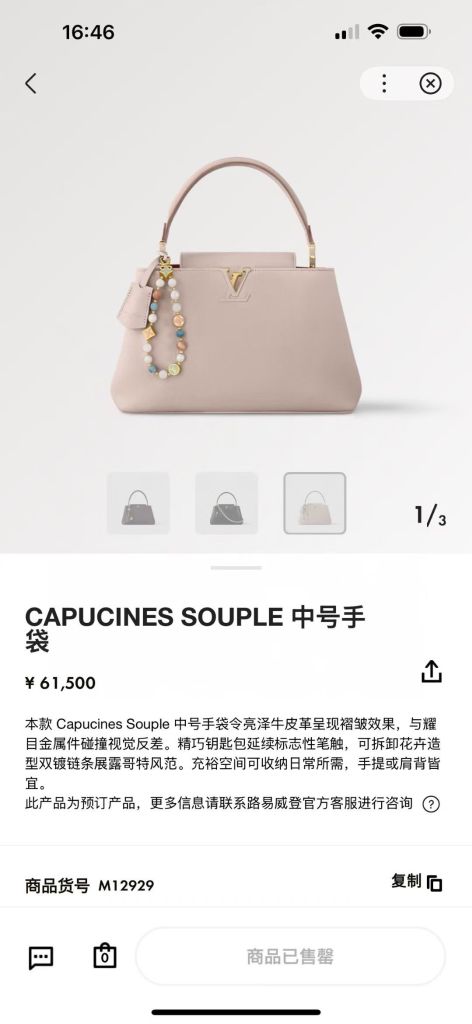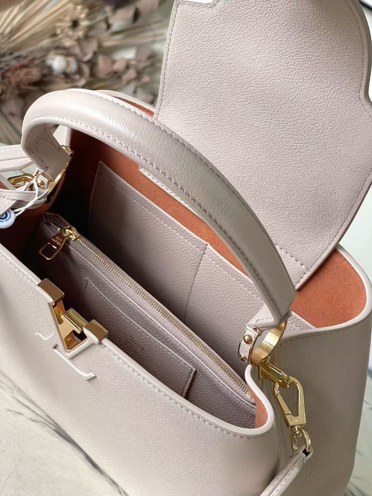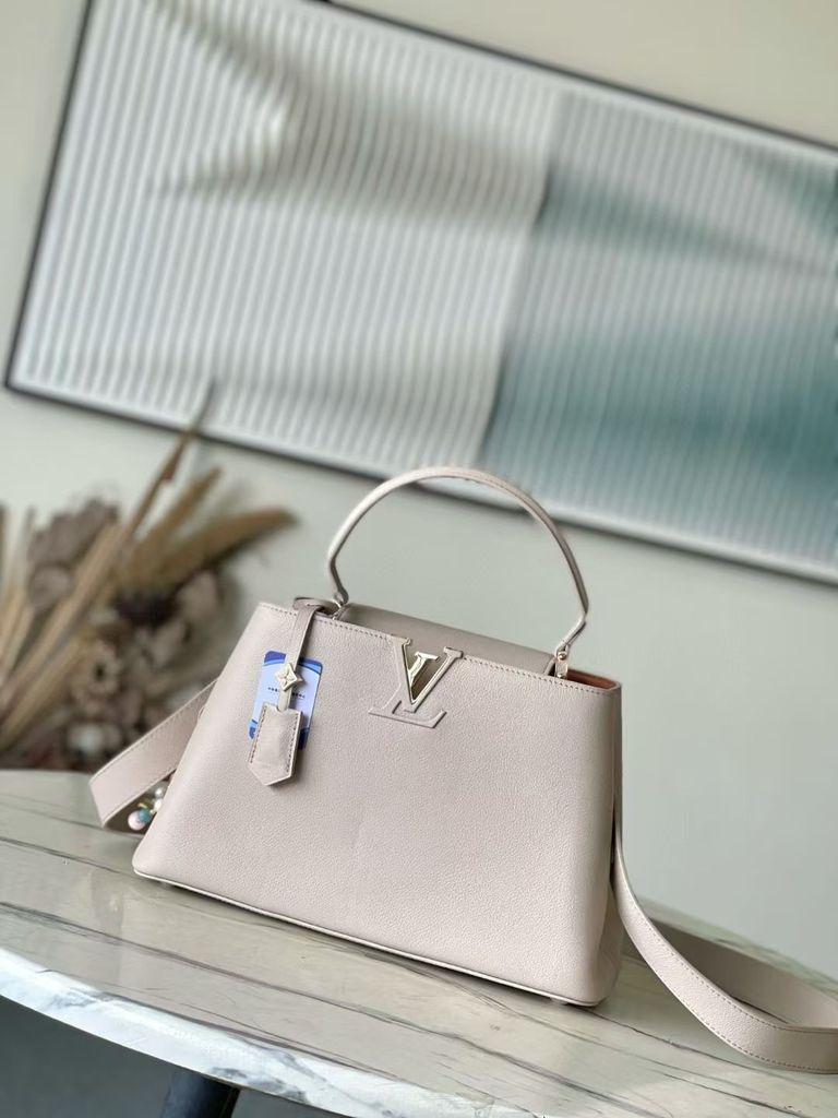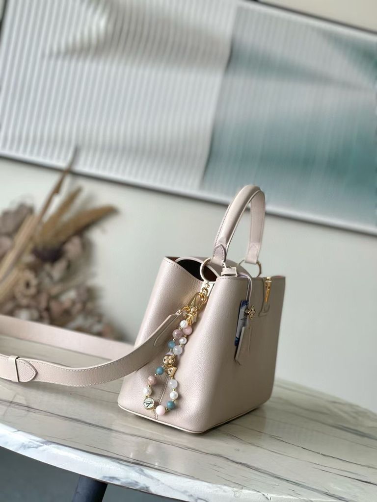 TÚI XÁCH NỮ LV* CAPUCINES SOUPLE MM – DA BÊ VÂN HẠT, CHARM ĐÁ NGỌC SANG TRỌNG 7xxxk