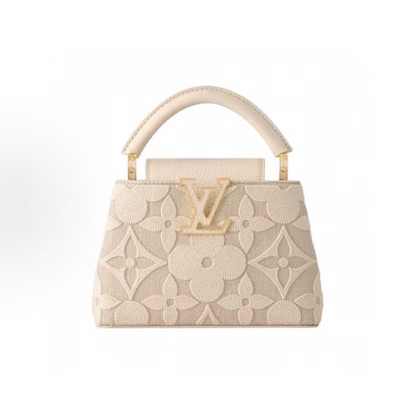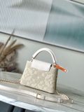 • Một chiếc mini–top handle gọn gàng nhưng nổi bật thần thái: tỉ lệ L25 cân đối, điểm nhấn kim loại dưới nắp gợi cảm hứng khung cửi dệt – tinh tế và khác biệt ngay từ cái nhìn đầu tiên.