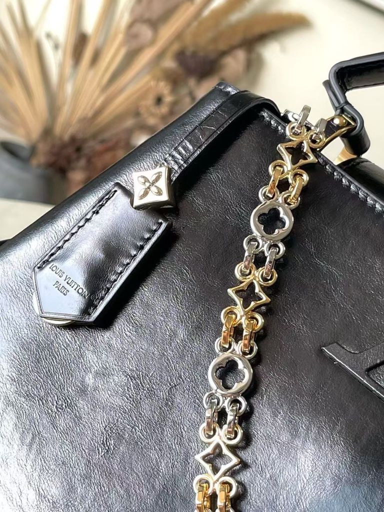 • Dây xích kim loại đặt tinh gọn trên quai, tăng chiều sâu thị giác và sự sang trọng.