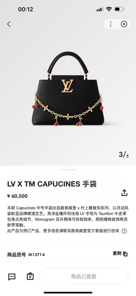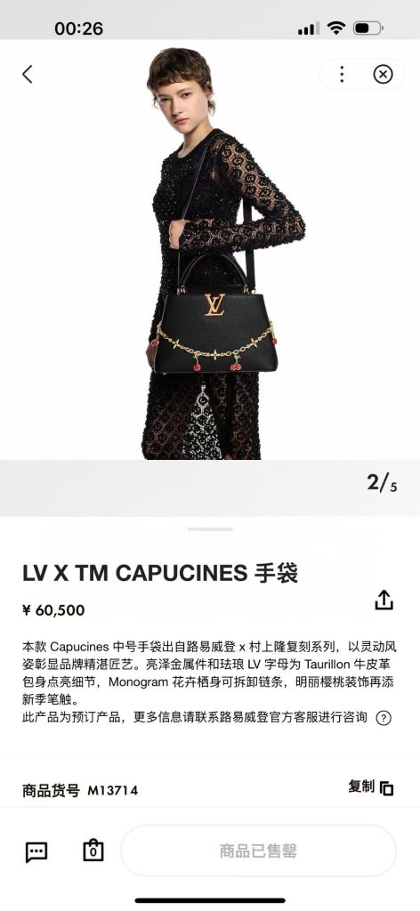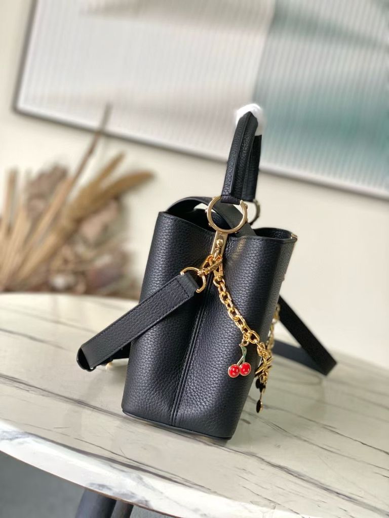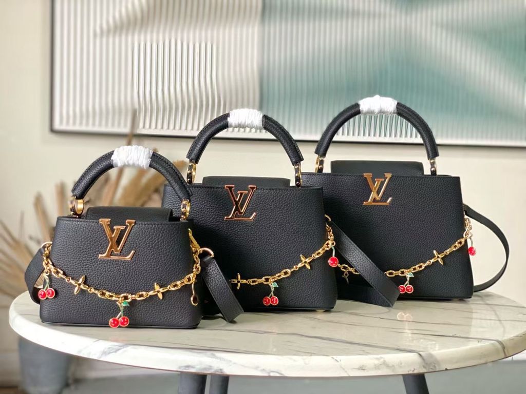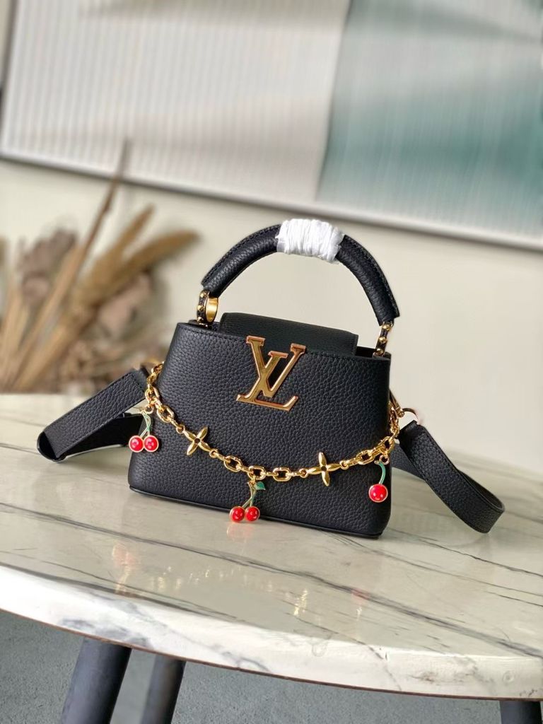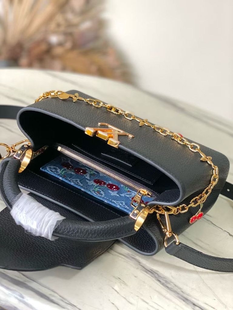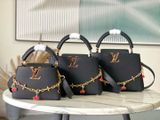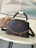 TÚI XÁCH NỮ L*V X TM CAPUCINES – DA TAURILLON VÂN HẠT, CHUỖI CHARM ANH ĐÀO MONOGRAM* 7xxxk