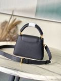 • Phom top-handle thanh lịch, nắp Capucines đặc trưng, giữ dáng chuẩn.