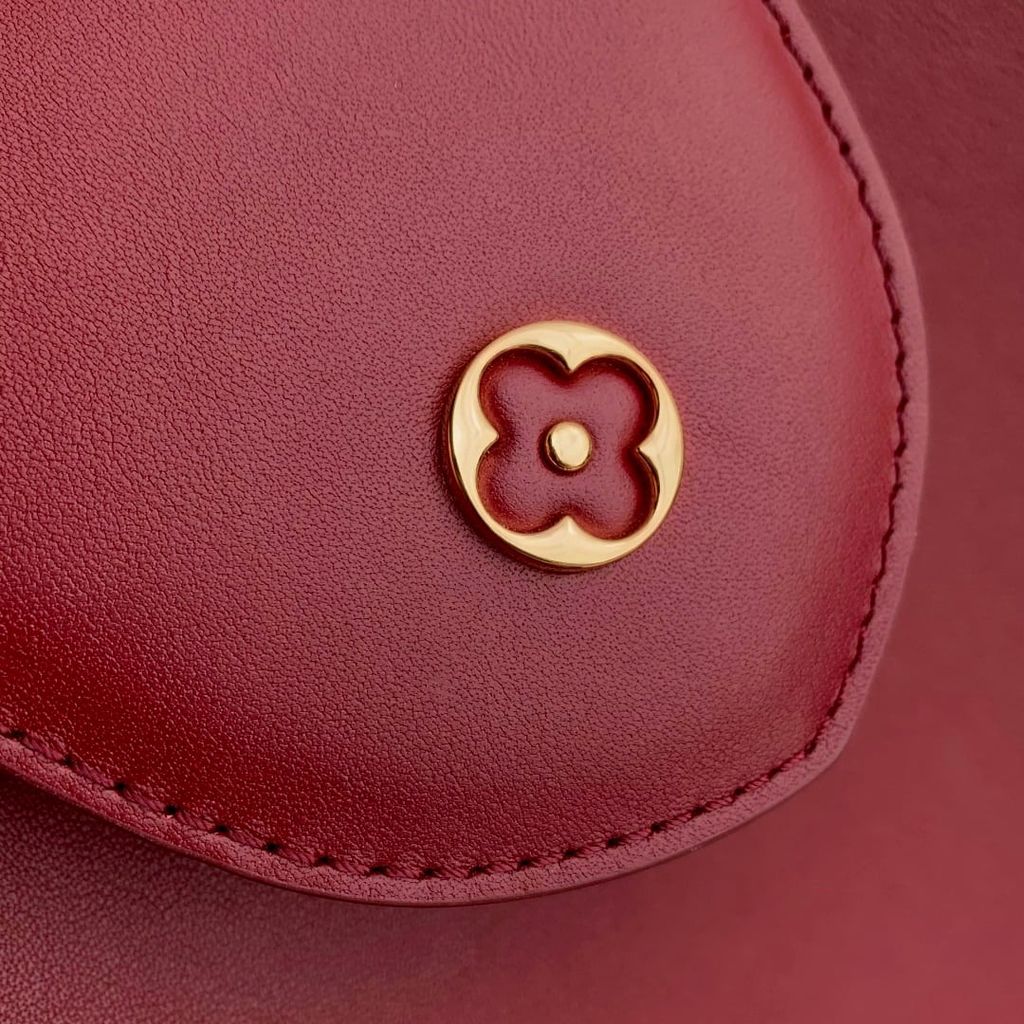 • Nắp gập thanh lịch, chi tiết kim loại ánh vàng và ổ khóa kèm clochette tạo điểm nhấn sang trọng.