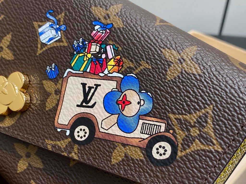VÍ DÀI NỮ L V SARAH WALLET MONOGRAM HOLIDAY VIVIENNE – NÚT HOA SIGNATURE ĐÁNG YÊU 1300k (HÀNG ORDER QUỐC TẾ)