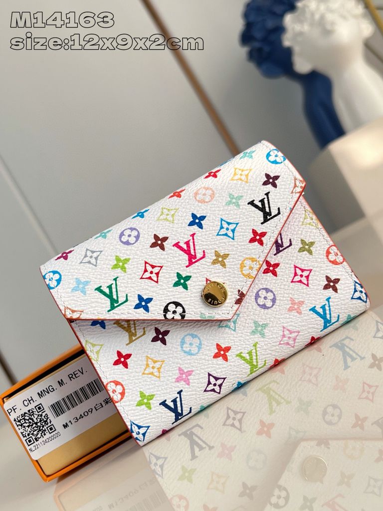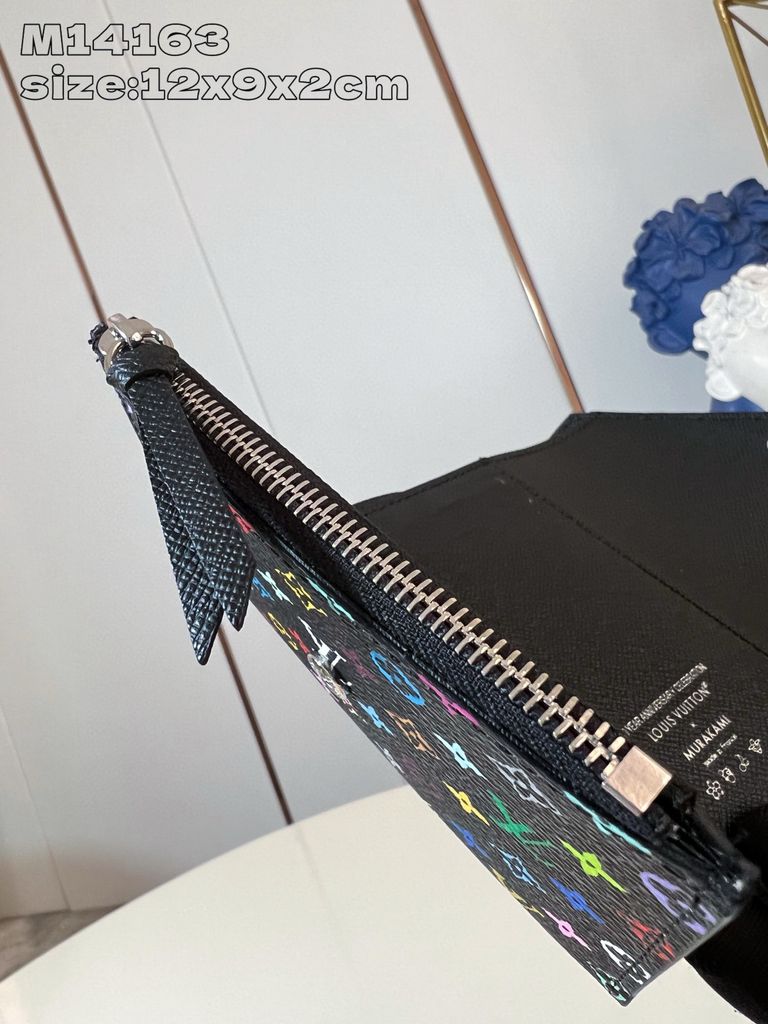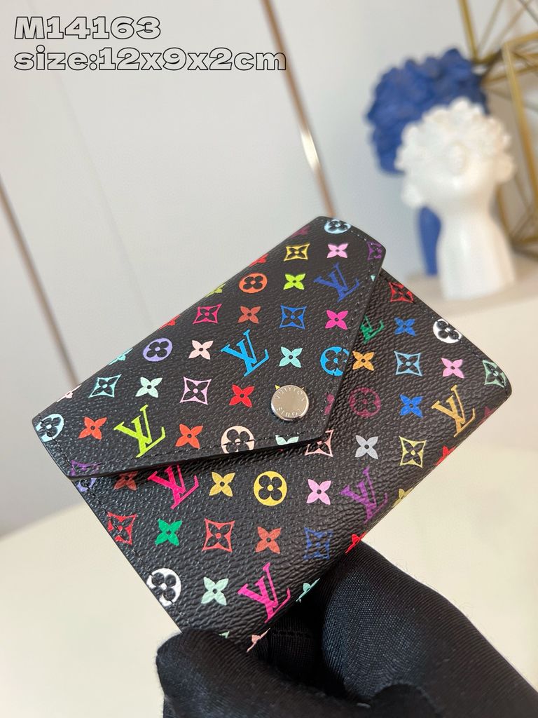 Phiên bản khắc lại này của ví Victorine từ dòng Louis Vuitton x Murakami nhỏ và tinh tế. Họa tiết Monogram đầy màu sắc tái hiện logo cổ điển của Louis Vuitton với tông màu cầu vồng nổi tiếng của nghệ sĩ Nhật Bản Takashi Murakami. Ví được làm bằng vải bạt phủ lớp lót bằng da bò mịn và phần cứng tông màu bạc. Nó có ngăn đựng tiền xu có khóa kéo và nhiều ngăn bên trong để đựng tiền giấy và danh thiếp. 12 × 9,5 × 2,5 cm (dài × cao × rộng)