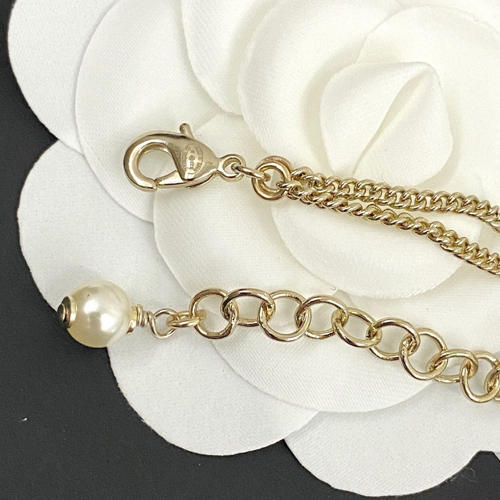 • Chuỗi hạt giả ngọc trai phối mắt xích, hiệu ứng lấp lánh tinh gọn, không phô trương.