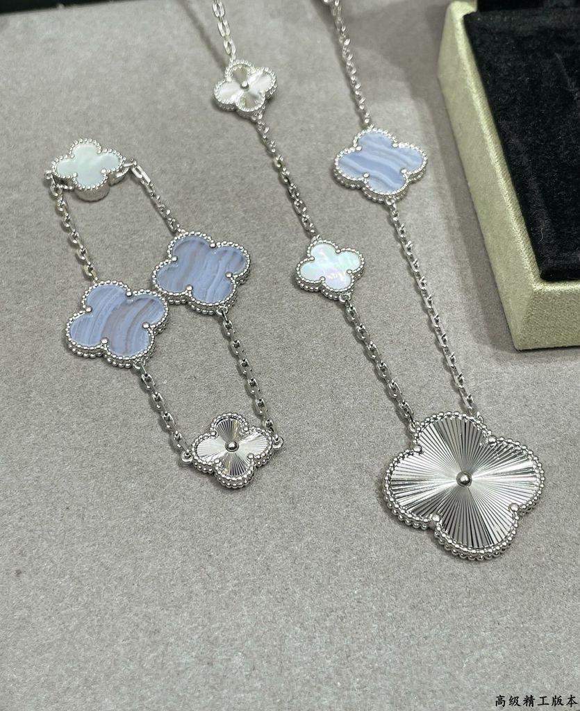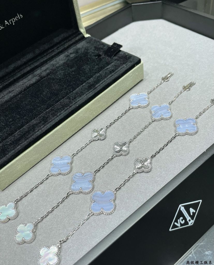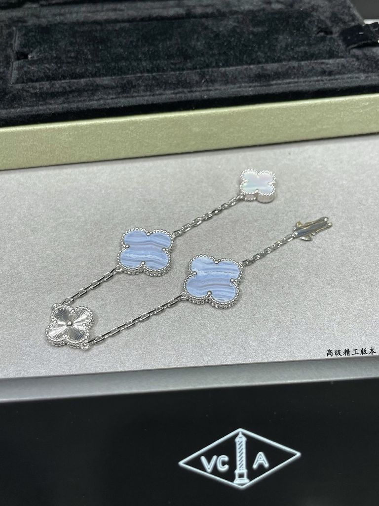 VÒNG TAY NAM NỮ VCA CHARM ALHAMBRA 4 HOA CHẠM KHẮC – PHỐI CHALCEDONY & XÀ CỪ TINH XẢO 1500k (HÀNG ORDER QUỐC TẾ)