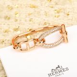 Một thiết kế tạo điểm nhấn rất mạnh trên tay, vừa mang nét thời trang cao cấp vừa có cá tính riêng nhờ cấu trúc móc nối phối nửa đai đính đá sáng bắt mắt.