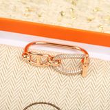 • Điểm nhấn nằm ở chi tiết móc xích biểu tượng kết hợp phần khoen oval đính đá, cho cảm giác nổi bật nhưng vẫn gọn sang khi lên tay.