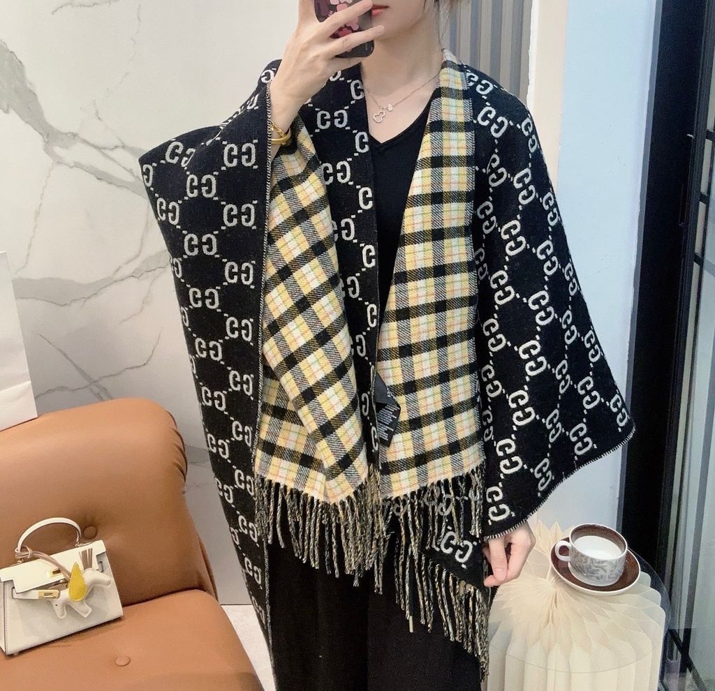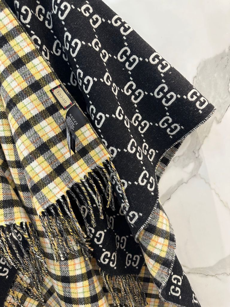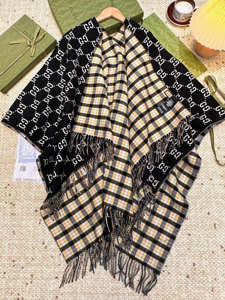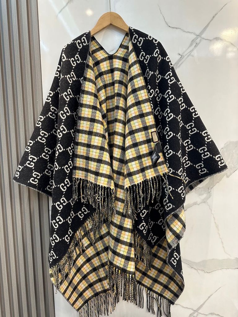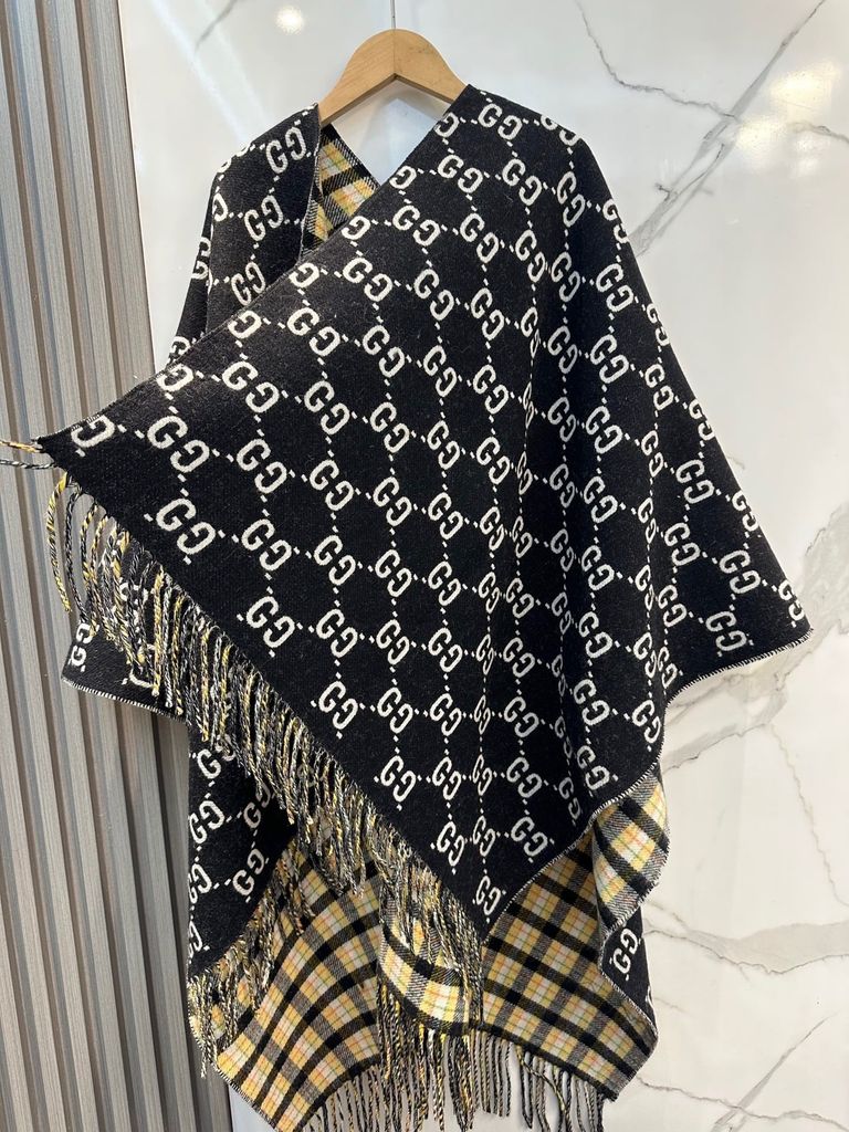 PONCHO GUCC* MONOGRAM X KẺ TARTAN, DOUBLE-FACE 100% WUÔL 1750k (HÀNG ORDER QUỐC TẾ)