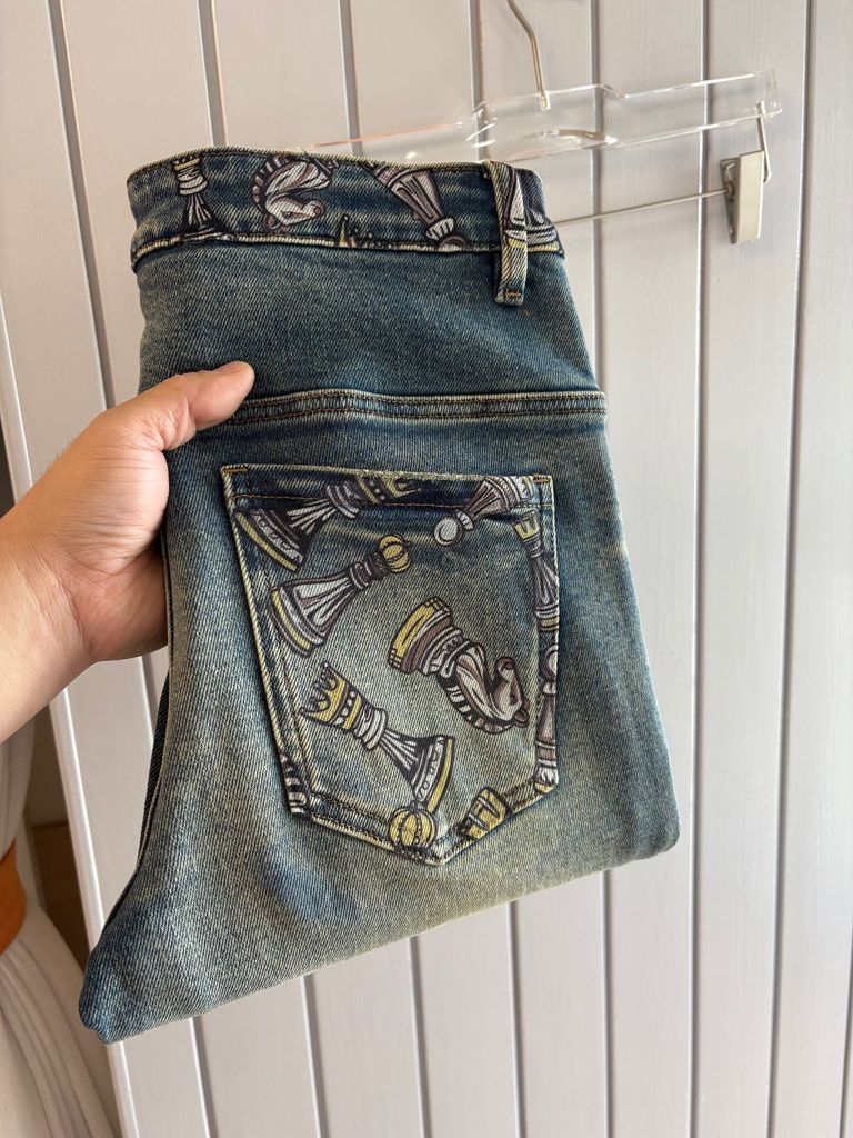 QUẦN JEANS NAM DG WASH XƯỚC – ĐIỂM NHẤN CẠP & TÚI SAU IN HỌA TIẾT, FORM ÔM GỌN TÔN DÁNG 1450k (HÀNG ORDER QUỐC TẾ)