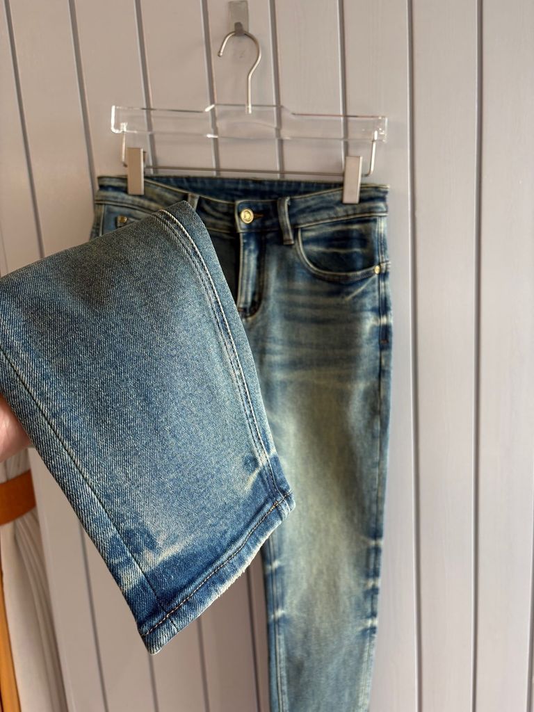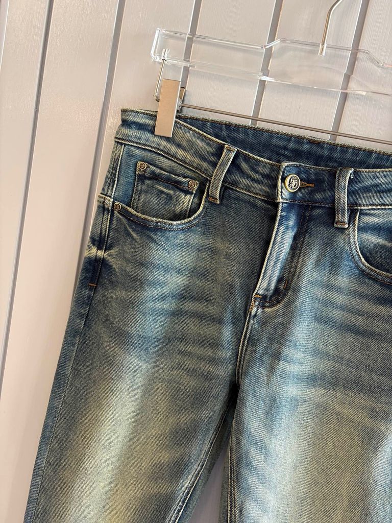 • Denim dệt chắc tay, có độ co giãn nhẹ giúp mặc thoải mái và giữ form ổn định