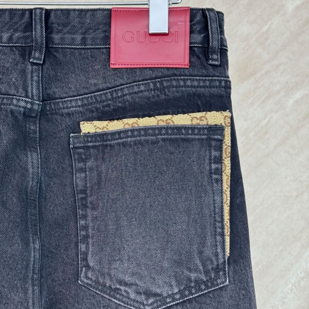 • Dáng jeans chuẩn form, đường nét tối giản nhưng có điểm nhấn viền GG canvas tinh tế