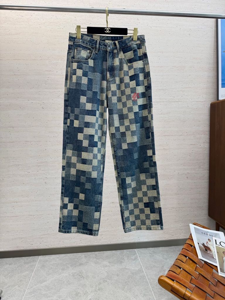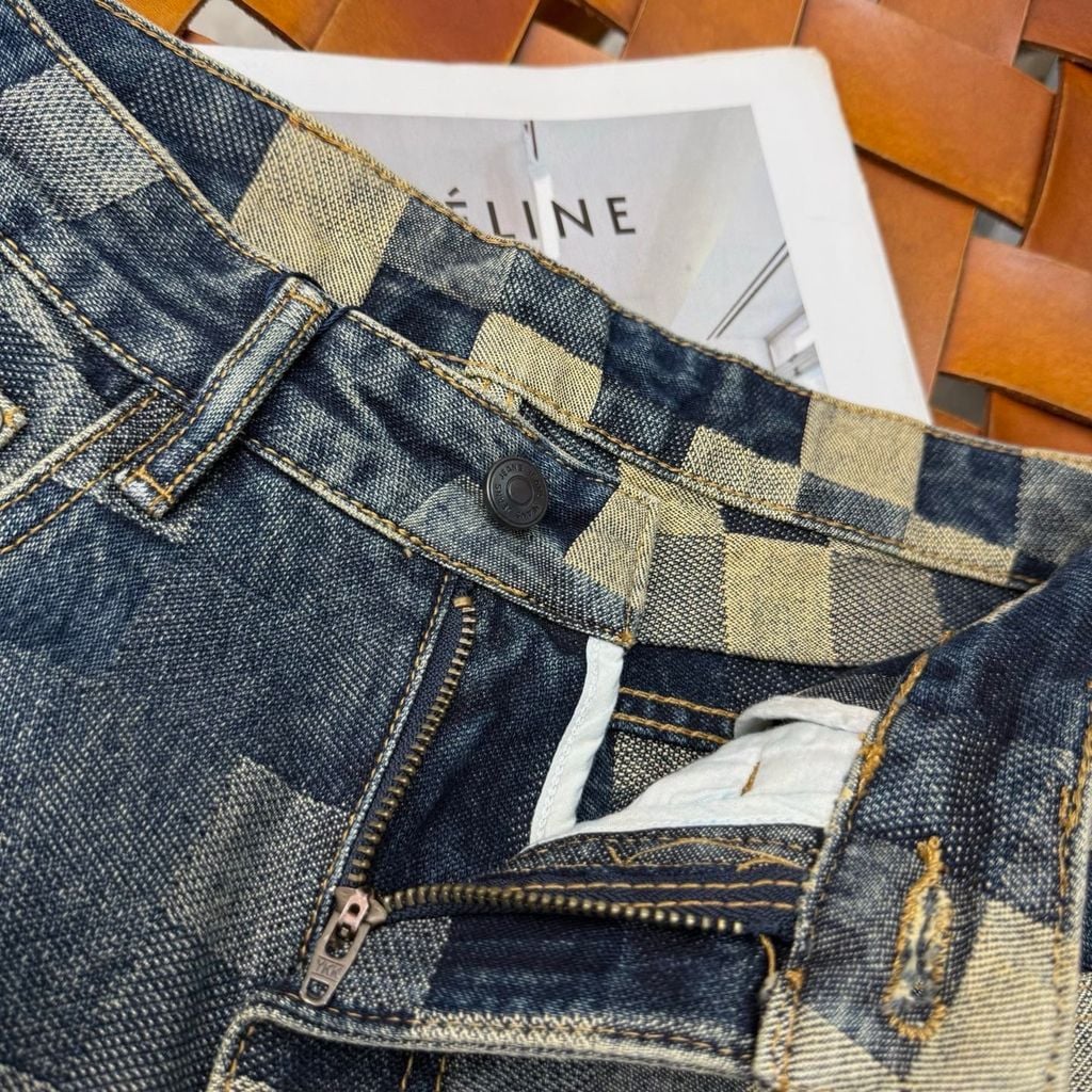 QUẦN JEANS NAM L V PHOM ỐNG ĐỨNG – HỌA TIẾT Ô VUÔNG PATCHWORK CỰC CHẤT 1600k (HÀNG ORDER QUỐC TẾ)