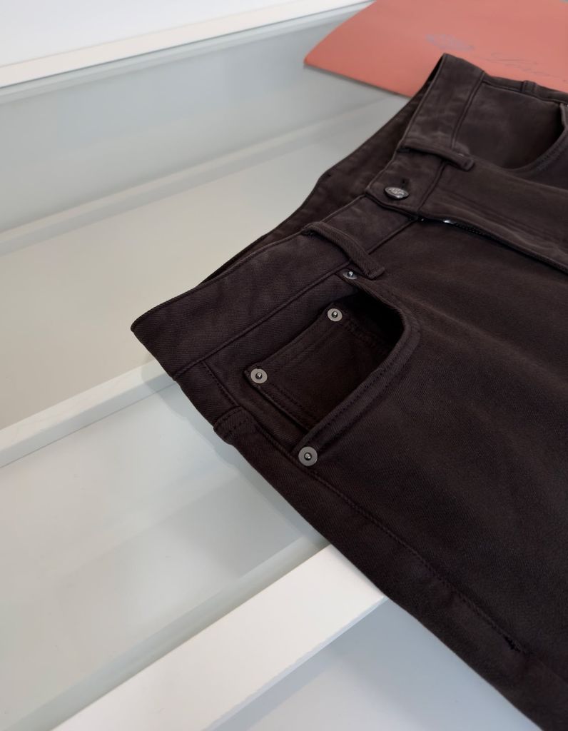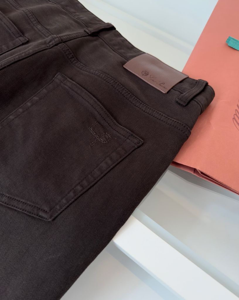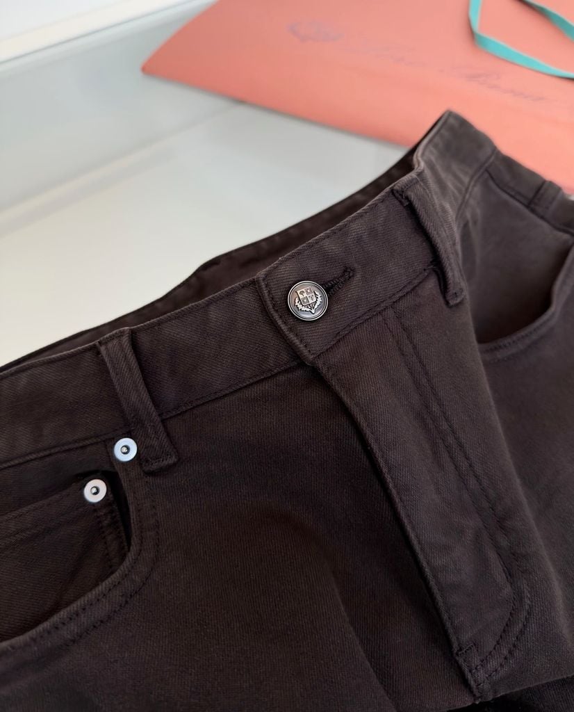 • Denim dệt riêng cho bề mặt mịn, độ đứng vừa phải và cảm giác mặc “xịn” rõ rệt