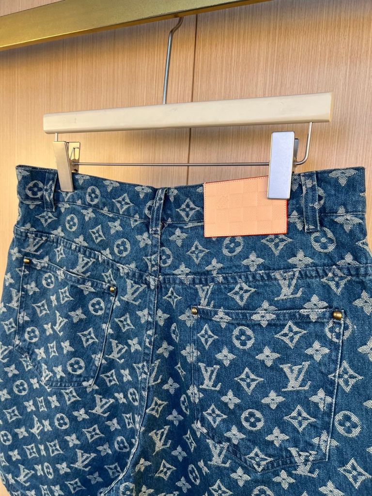 QUẦN SHORT UNISEX L V – DENIM JACQUARD MONOGRAM TOÀN THÂN, FORM ĐỨNG SANG TRỌNG 1350k (HÀNG ORDER QUỐC TẾ)
