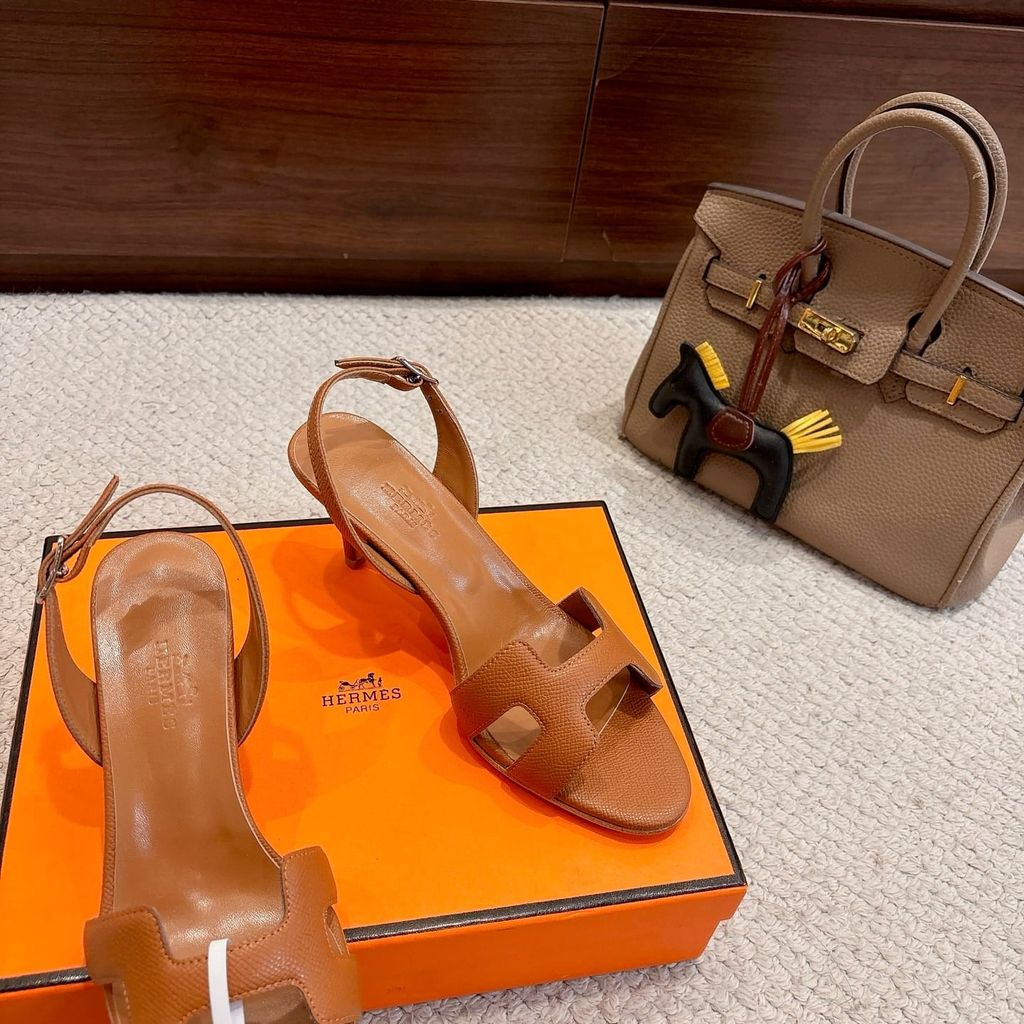 SANDAL CAO GÓT NỮ H M DÁNG H BIỂU TƯỢNG – DA NAPPA NGUYÊN TẤM, GÓT 6,5CM & 9,5CM 1750K (HÀNG ORDER QUỐC TẾ)*
