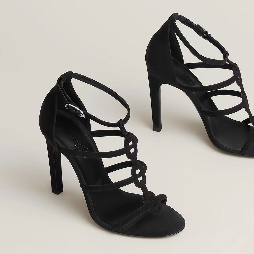 • Dáng sandal quai đan mảnh kiểu “cage” ôm chân gọn gàng, tôn bàn chân thon và đường cổ chân