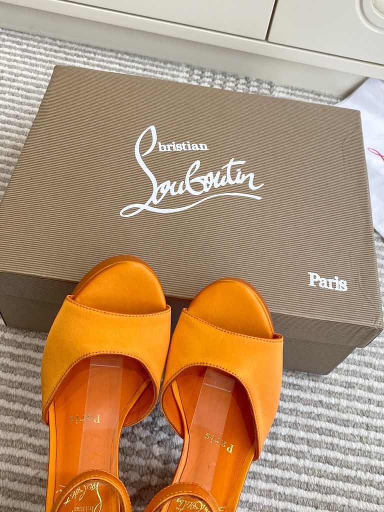 SANDAL CAO GÓT NỮ LOU CAM SATIN ĐẾ ĐỎ PLATFORM* 1950k (HÀNG ORDER QUỐC TẾ)