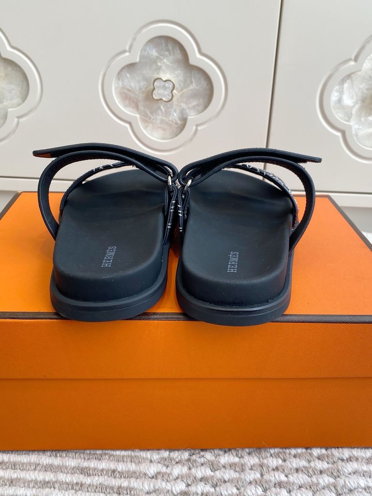 Một đôi sandal nhìn là nhận ra ngay “chất” riêng: phom Chypre khỏe khoắn, tinh gọn nhưng vẫn đủ độ sang để lên outfit rất có gu.