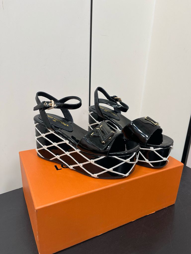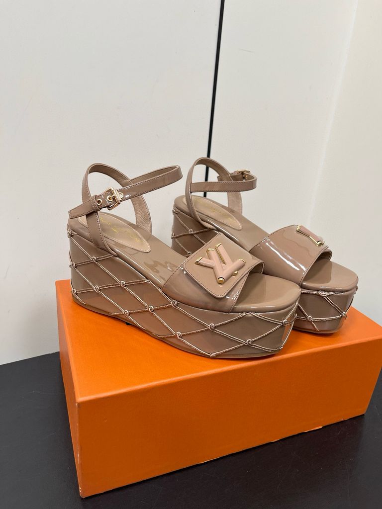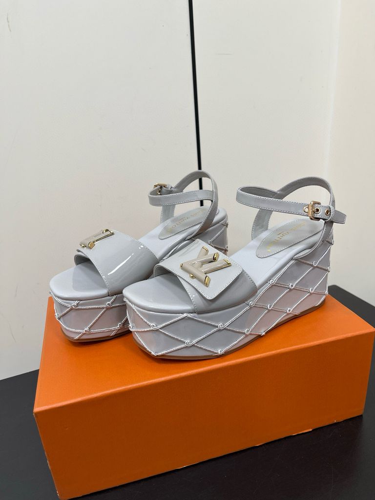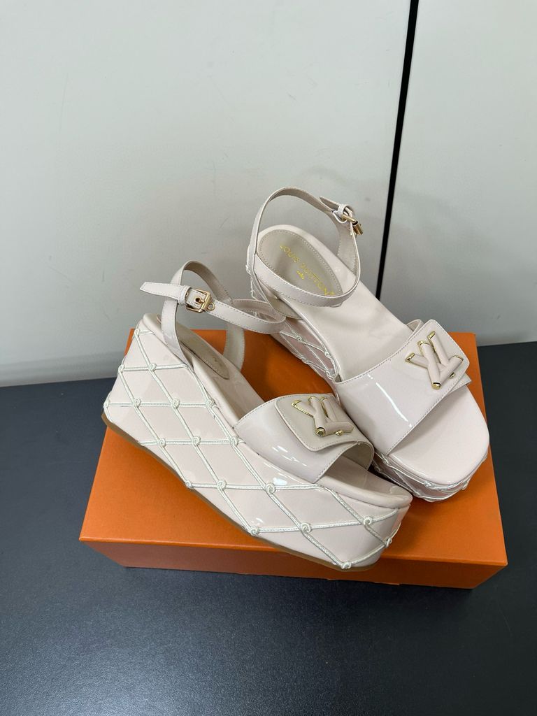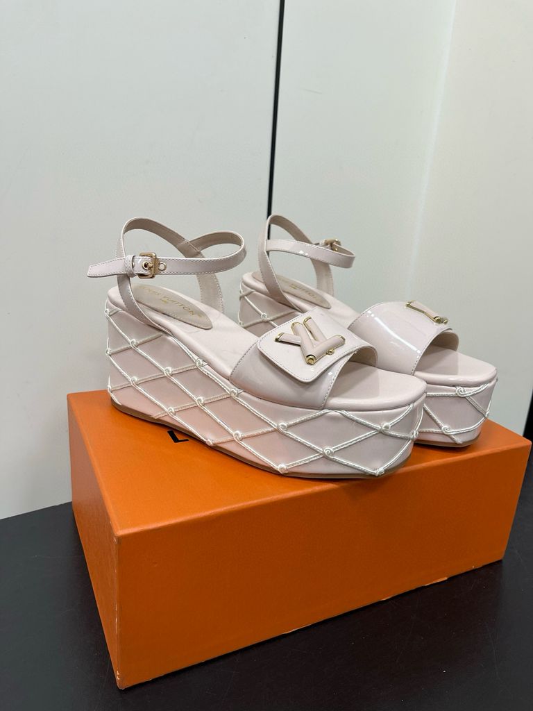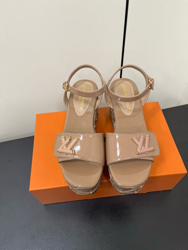 Sandal nữ đế xuồng L*V cao 9cm da bò bóng kiểu đẹp mẫu mới VIP 1:1 1700k
