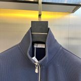 Một chiếc áo len “nhìn là thấy sang” nhờ bề mặt dệt gân sắc nét, điểm nhấn hoạ tiết signature tinh tế và dáng half-zip giúp tổng thể gọn gàng, hiện đại.