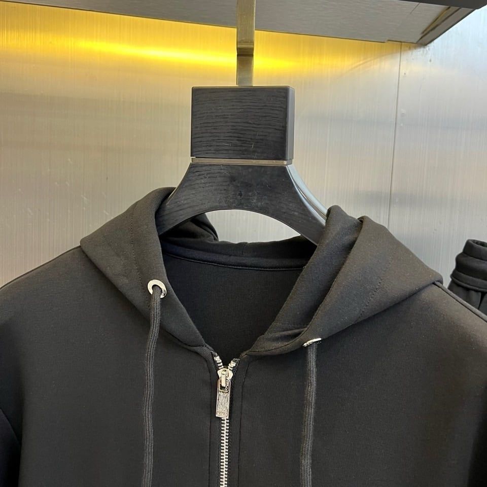 • Set 2 món đồng bộ: áo hoodie + quần jogger, tổng thể tối giản nhưng rất “đắt” khi lên outfit