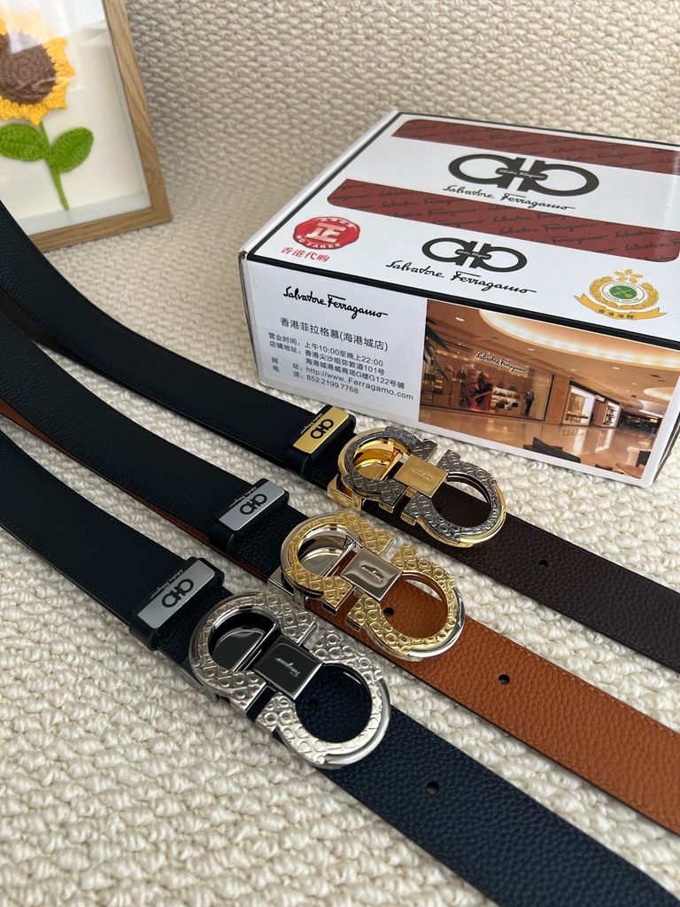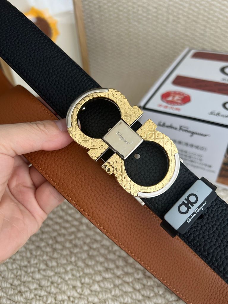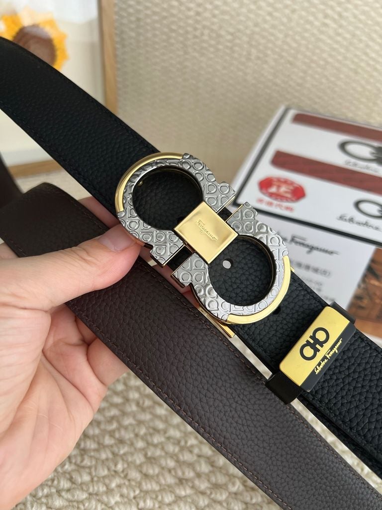 THẮT LƯNG NAM FERR* GANCINI REVERSIBLE DA VÂN KHÓA VÀNG PHOM BẢN 3.5CM 1100k (HÀNG ORDER QUỐC TẾ)