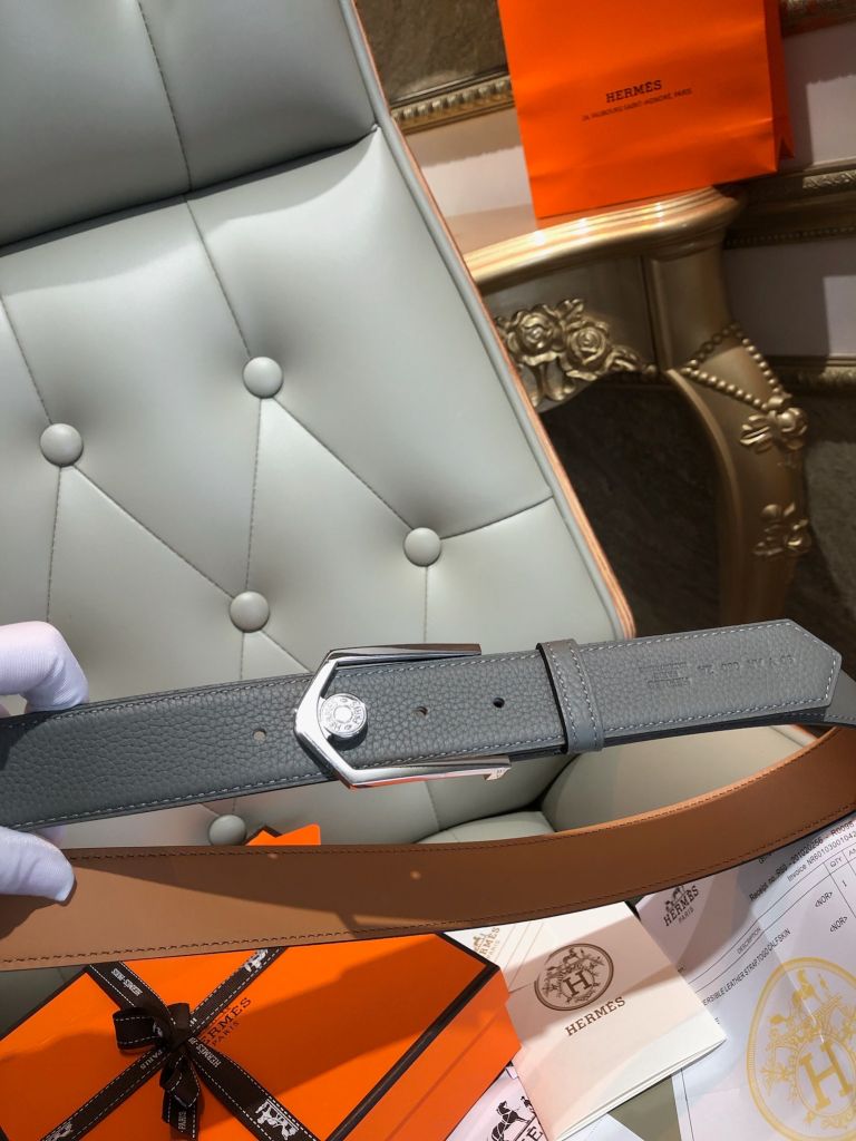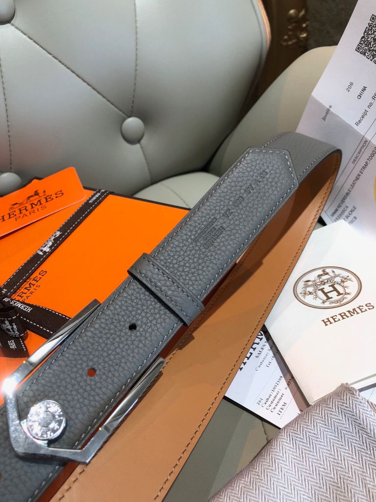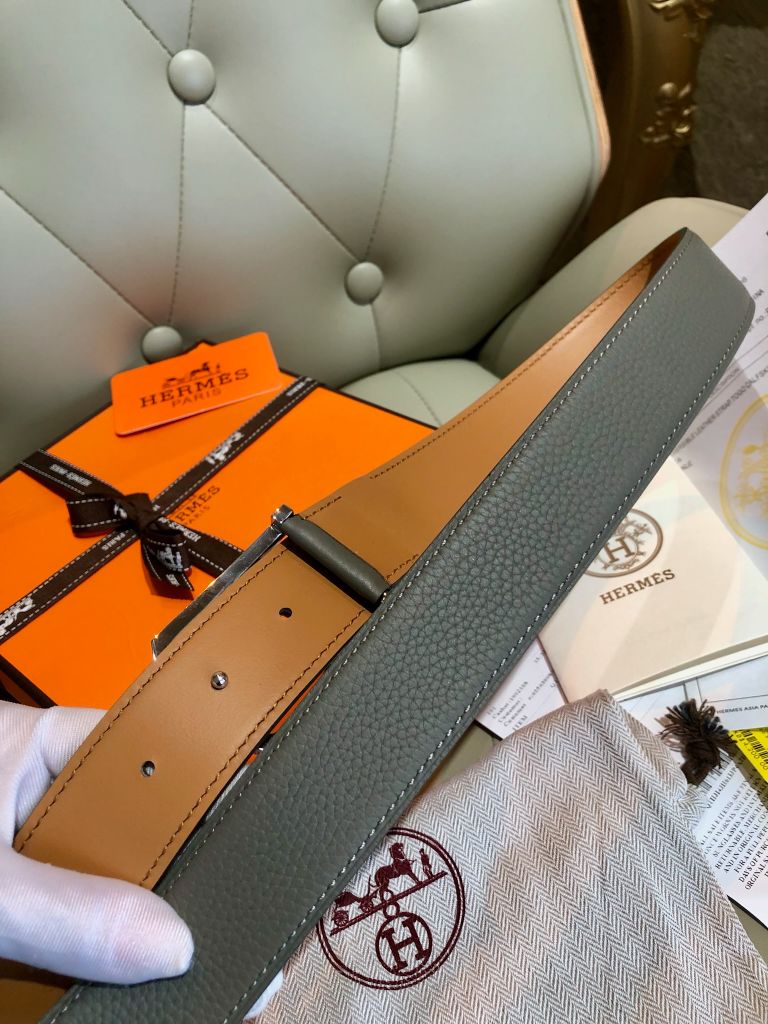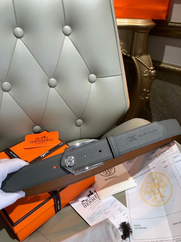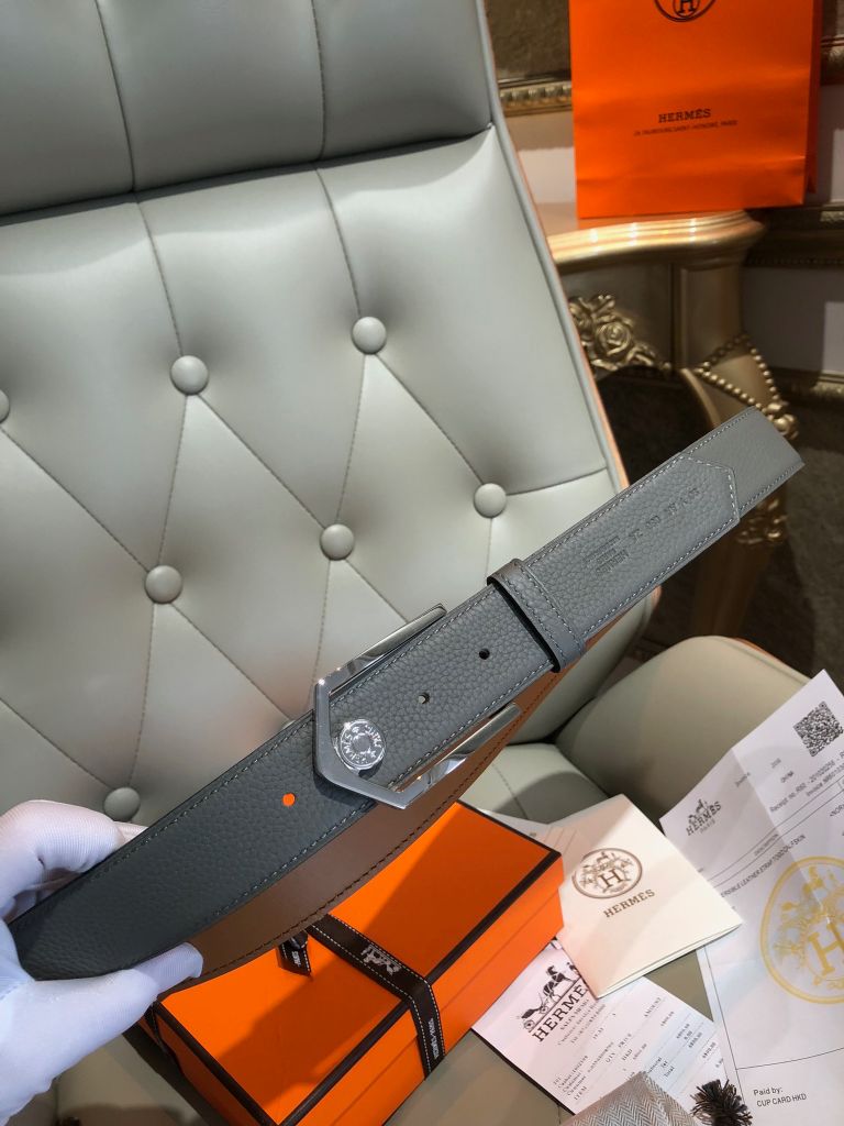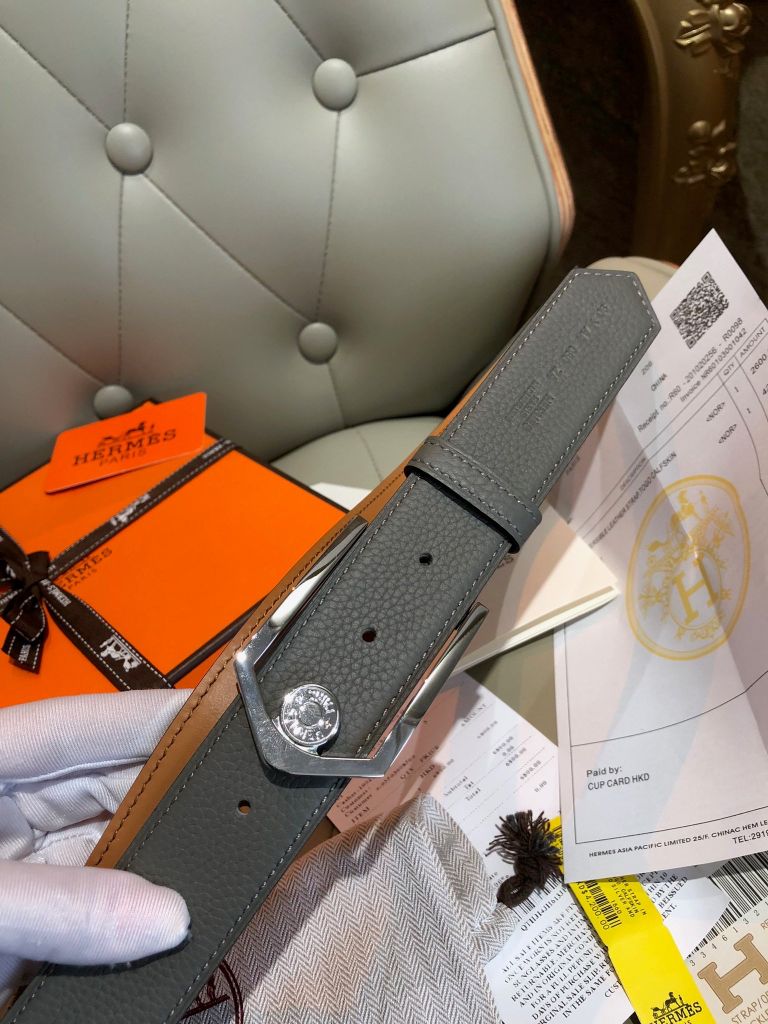 THẮT LƯNG NAM Herme* BUCKLE QUIZZ XÁM GHI – DA BÊ HẠT, KHÓA PALLADIUM 1350k
