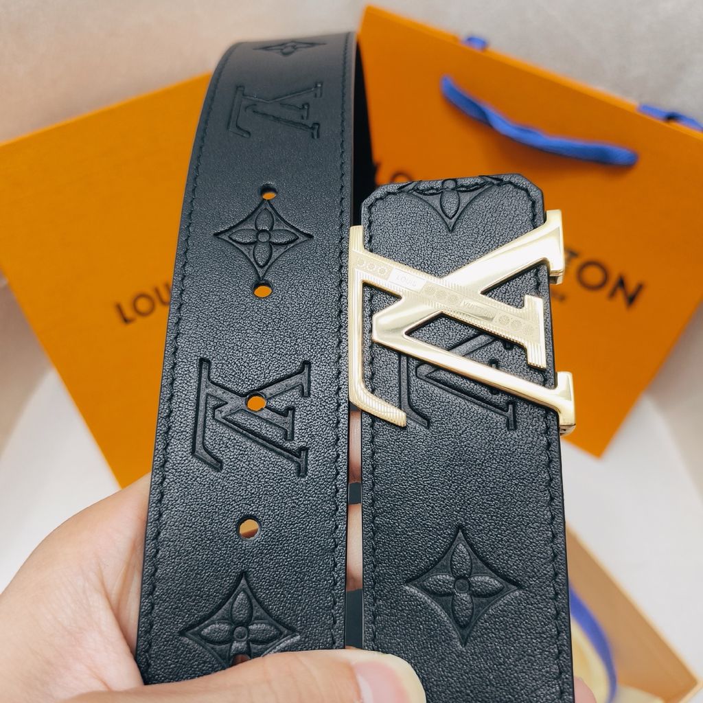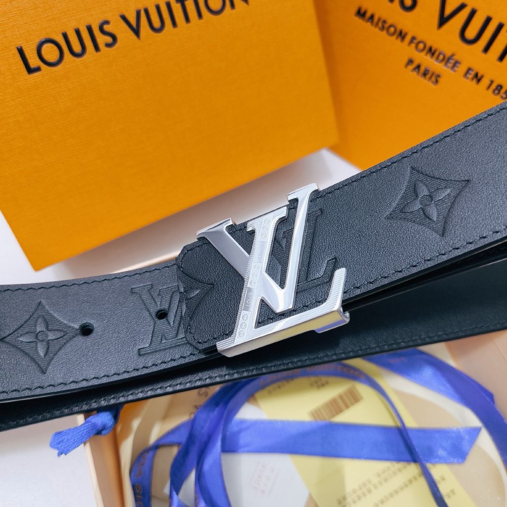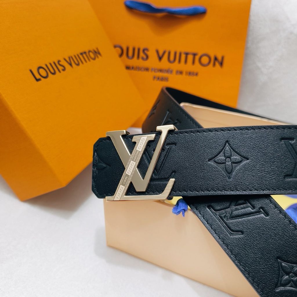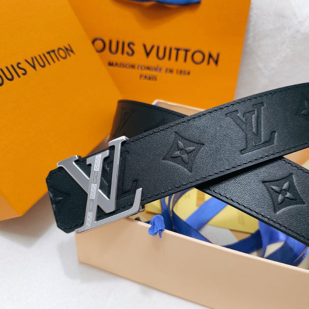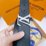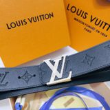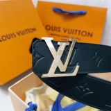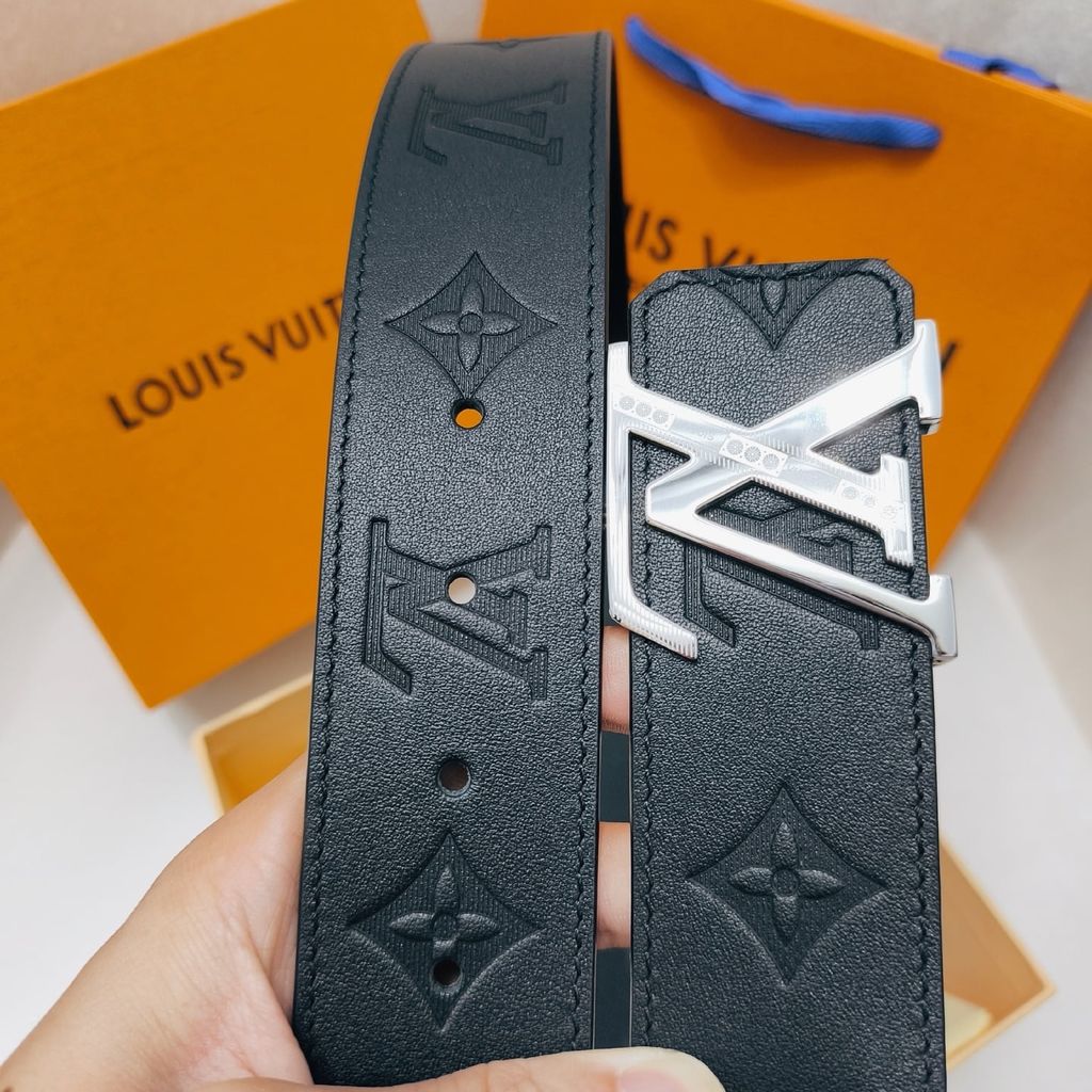 • Bản thắt lưng đậm chất nam tính, nền da đen dập monogram kết hợp khóa LV kim loại tông bạc nổi bật – lên dáng mạnh mẽ, hút mắt ngay khi nhìn.
