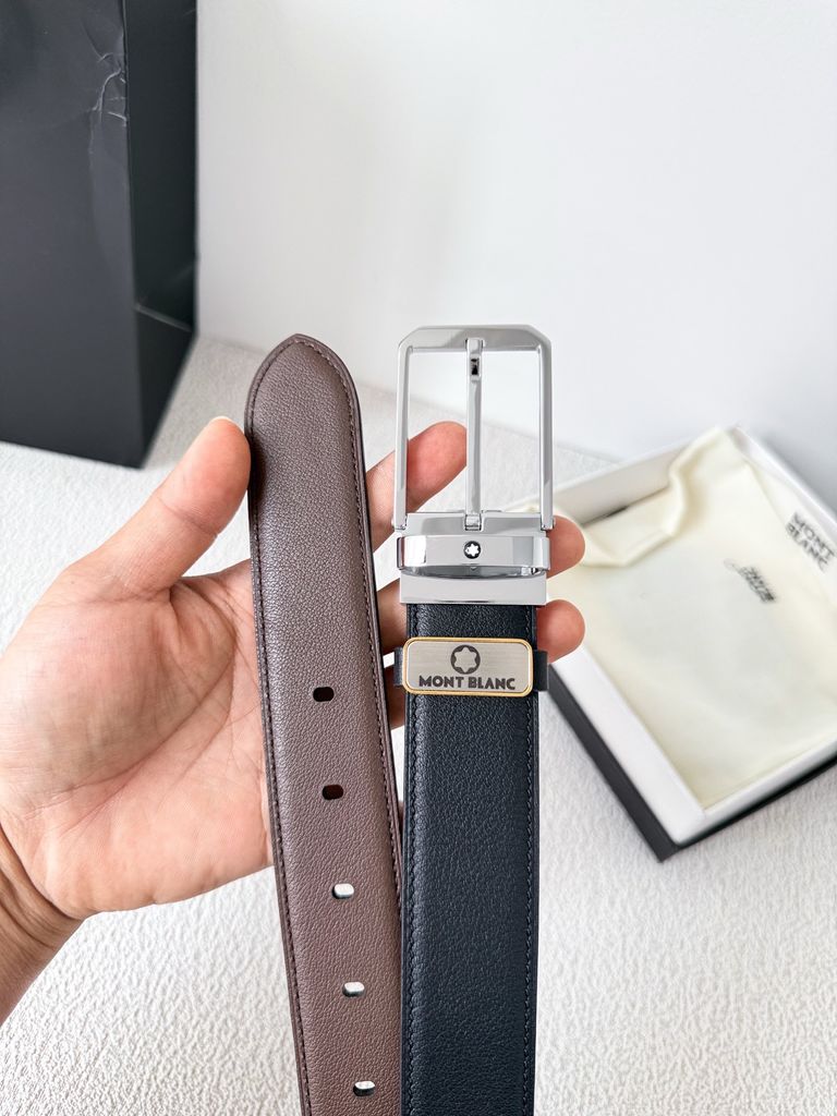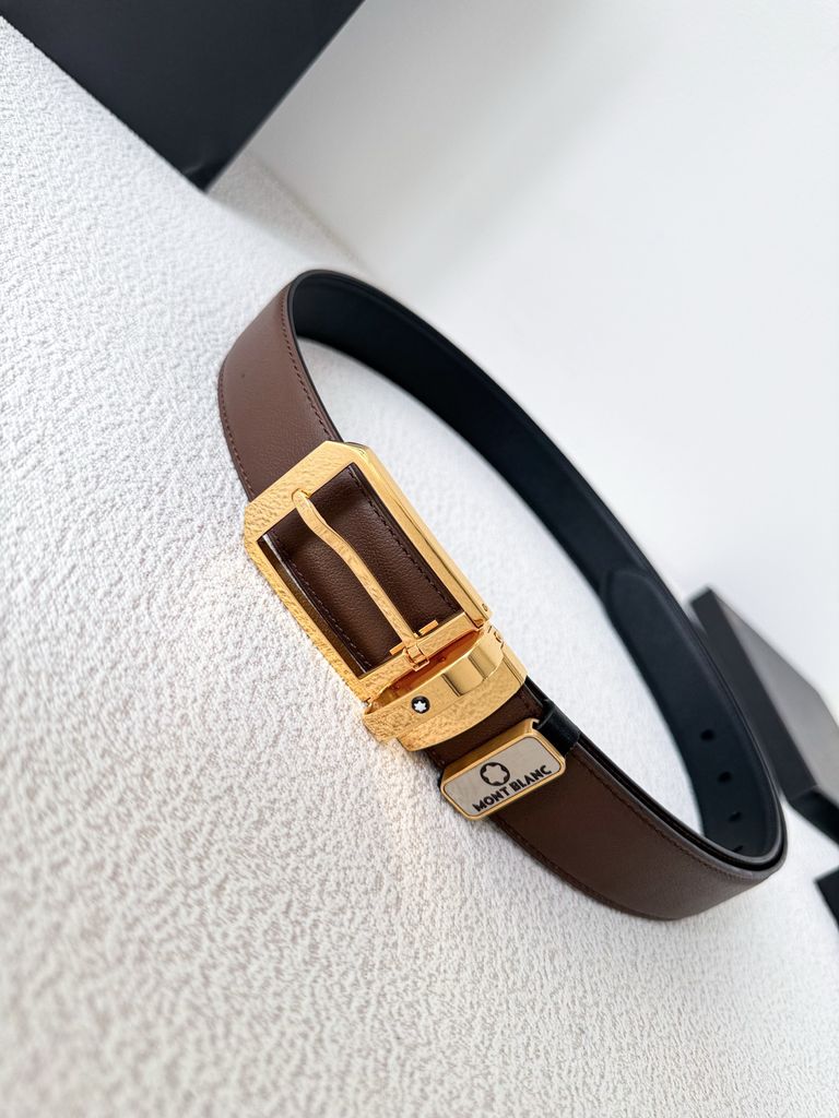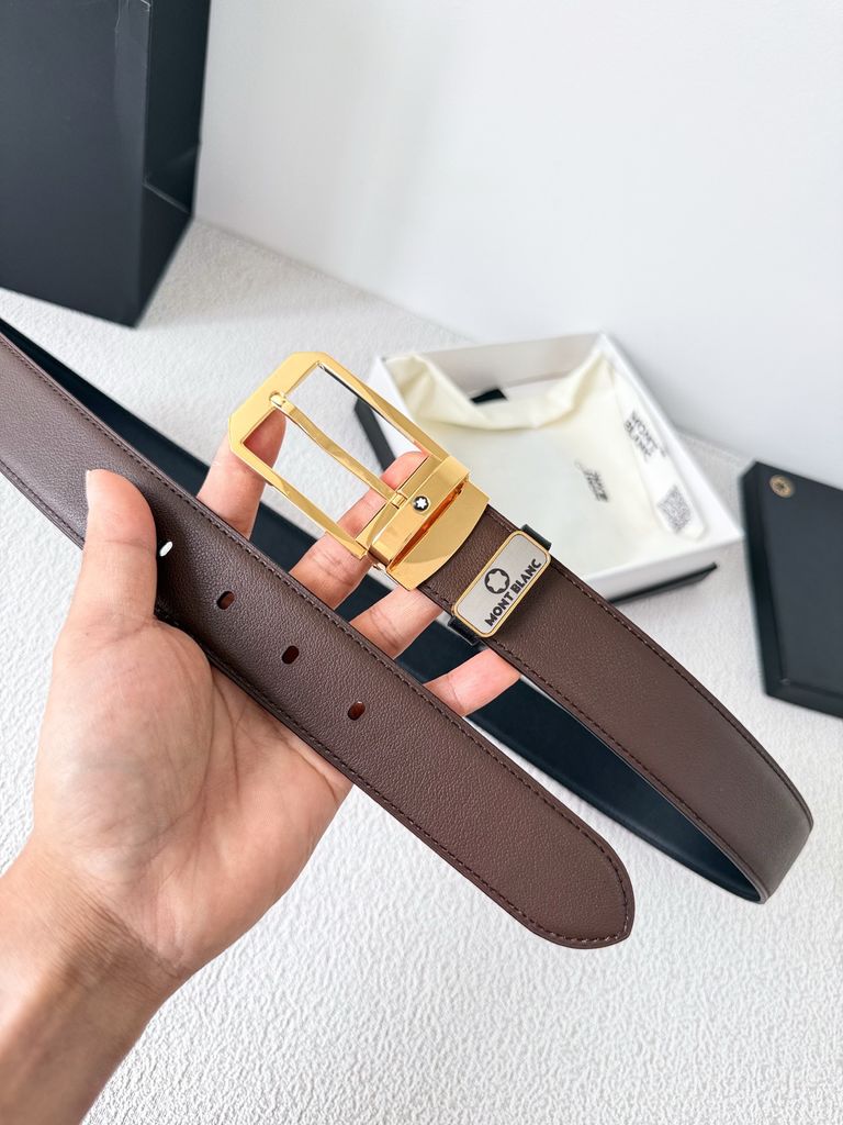 THẮT LƯNG NAM MONT BLANCT DA BÒ 2 MẶT ĐEN/NÂU – KHÓA KIM MẠ VÀNG, BẢN 3.5CM* 1200k