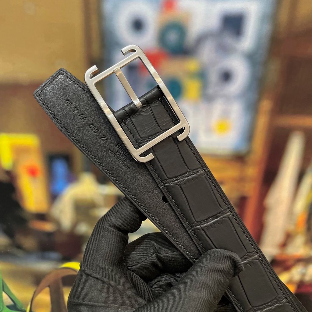 THẮT LƯNG NAM NỮ H M DA VÂN CÁ SẤU 2 MẶT – KHÓA KIM SIGNATURE PHOM SANG 32MM 1150k (HÀNG ORDER QUỐC TẾ)*