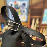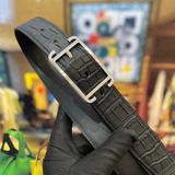 Bản thắt lưng tạo điểm nhấn “đắt giá” ngay từ ánh nhìn đầu tiên: bề mặt vân cá sấu sắc nét, lên outfit gọn gàng nhưng vẫn nổi bật khí chất.