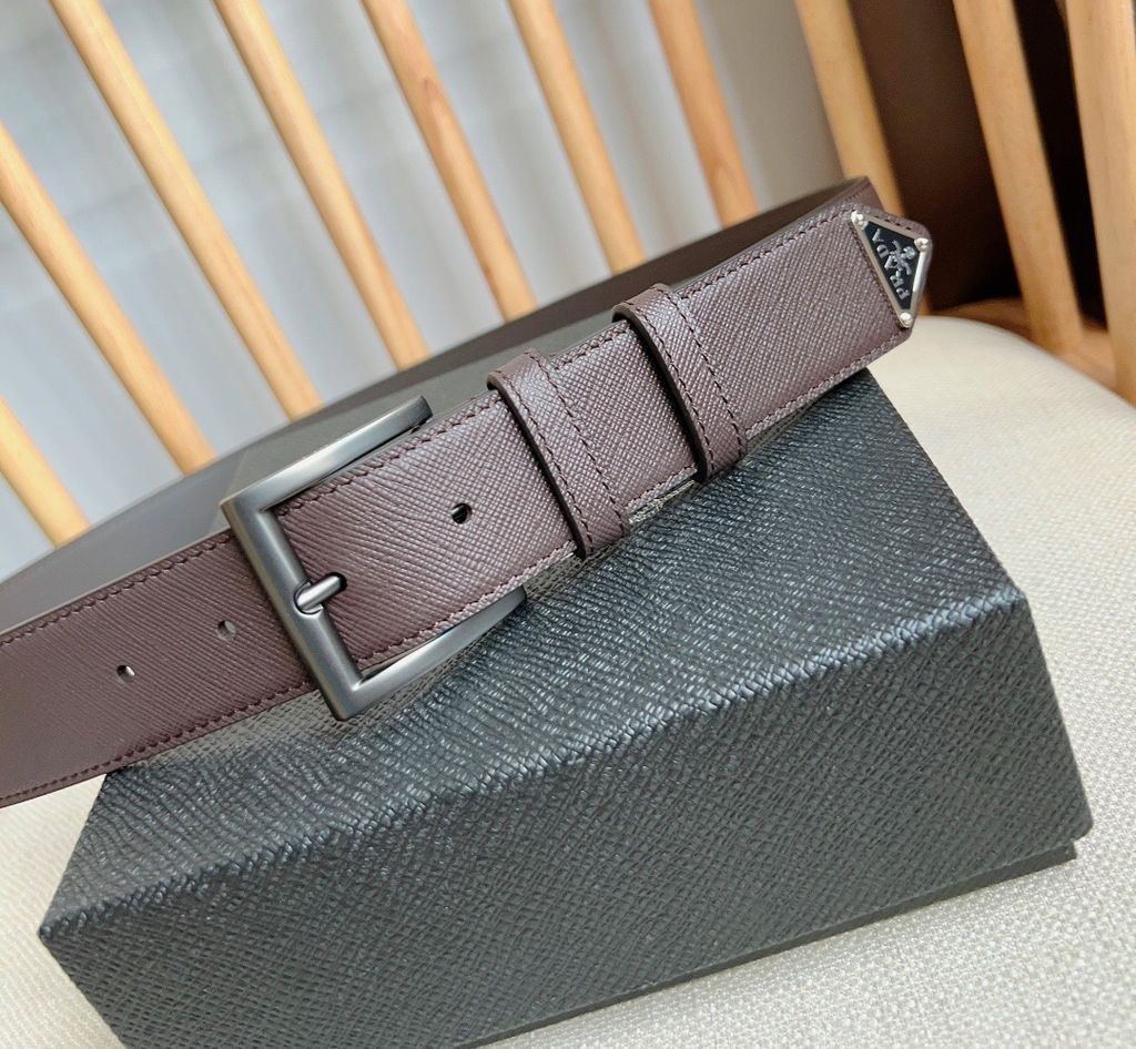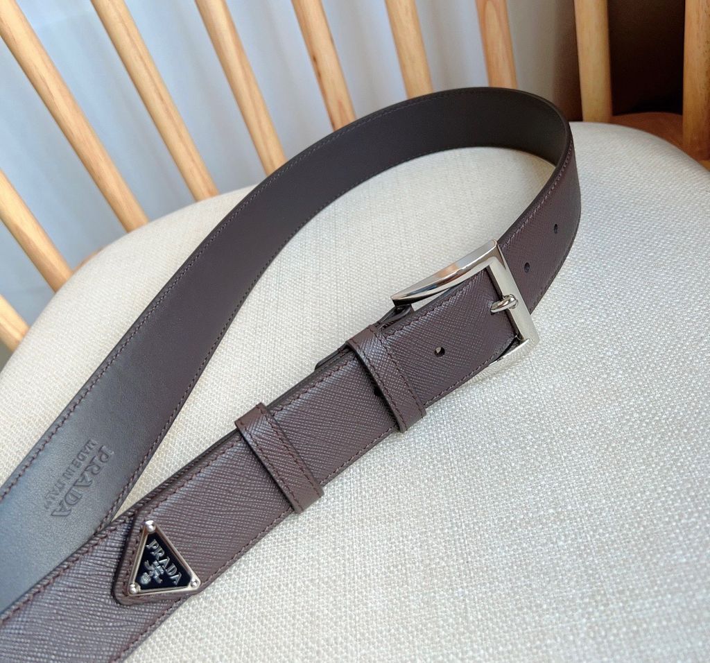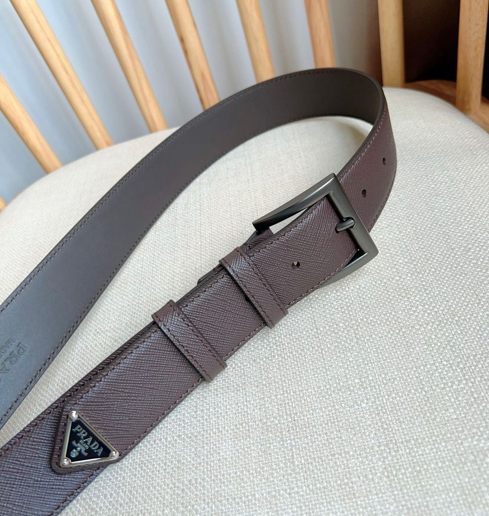 THẮT LƯNG NAM NỮ PRD SAFFIANO DẬP VÂN SANG GỌN – KHÓA KIM LOẠI SIGNATURE, ĐẦU TAM GIÁC 3.5CM 1050K (HÀNG ORDER QUỐC TẾ)
