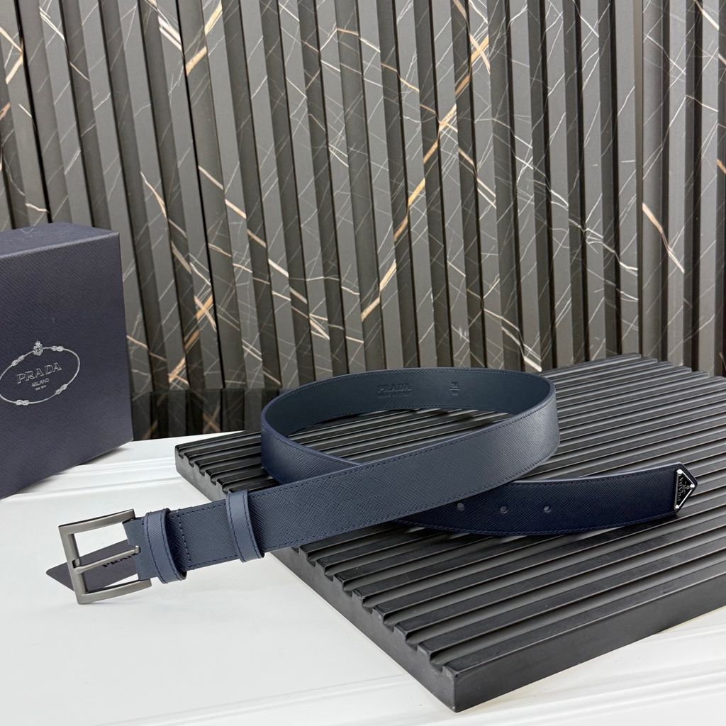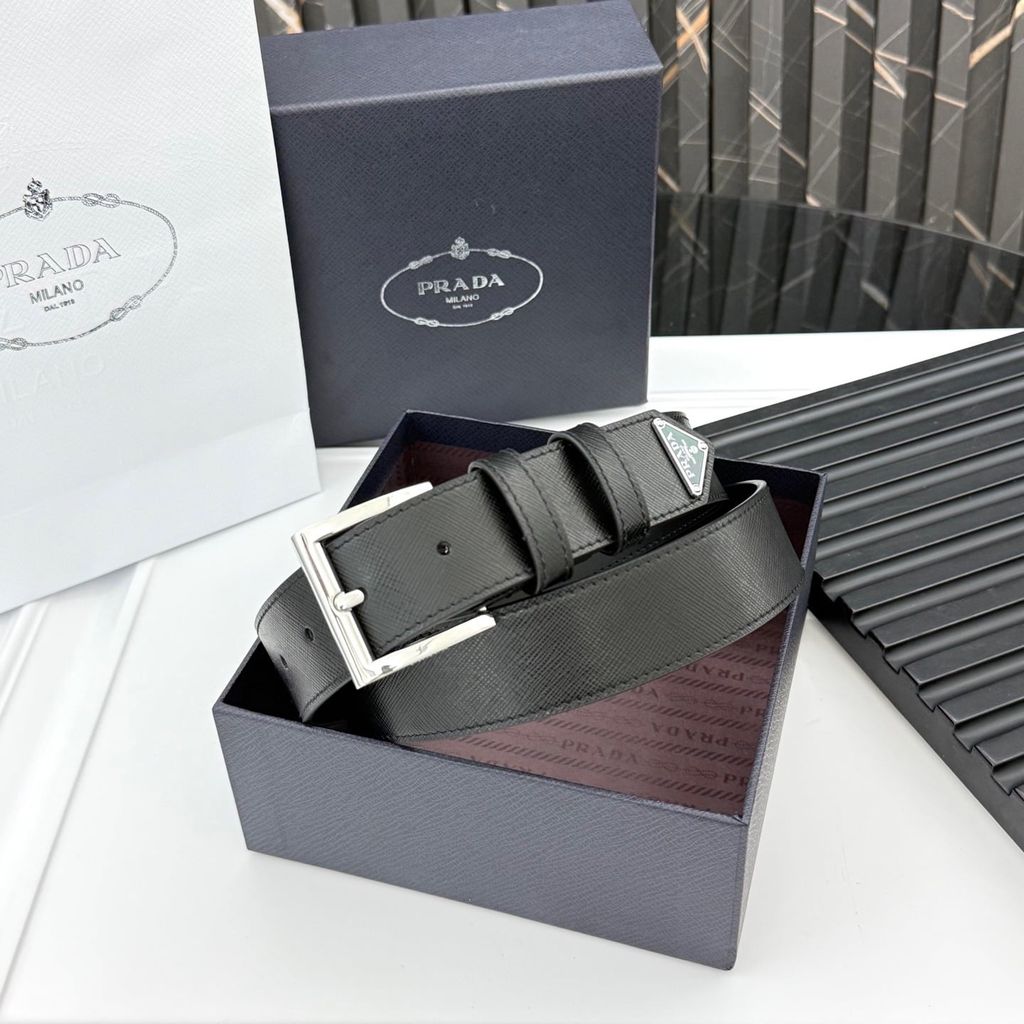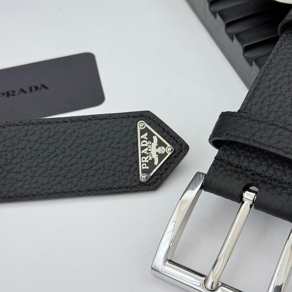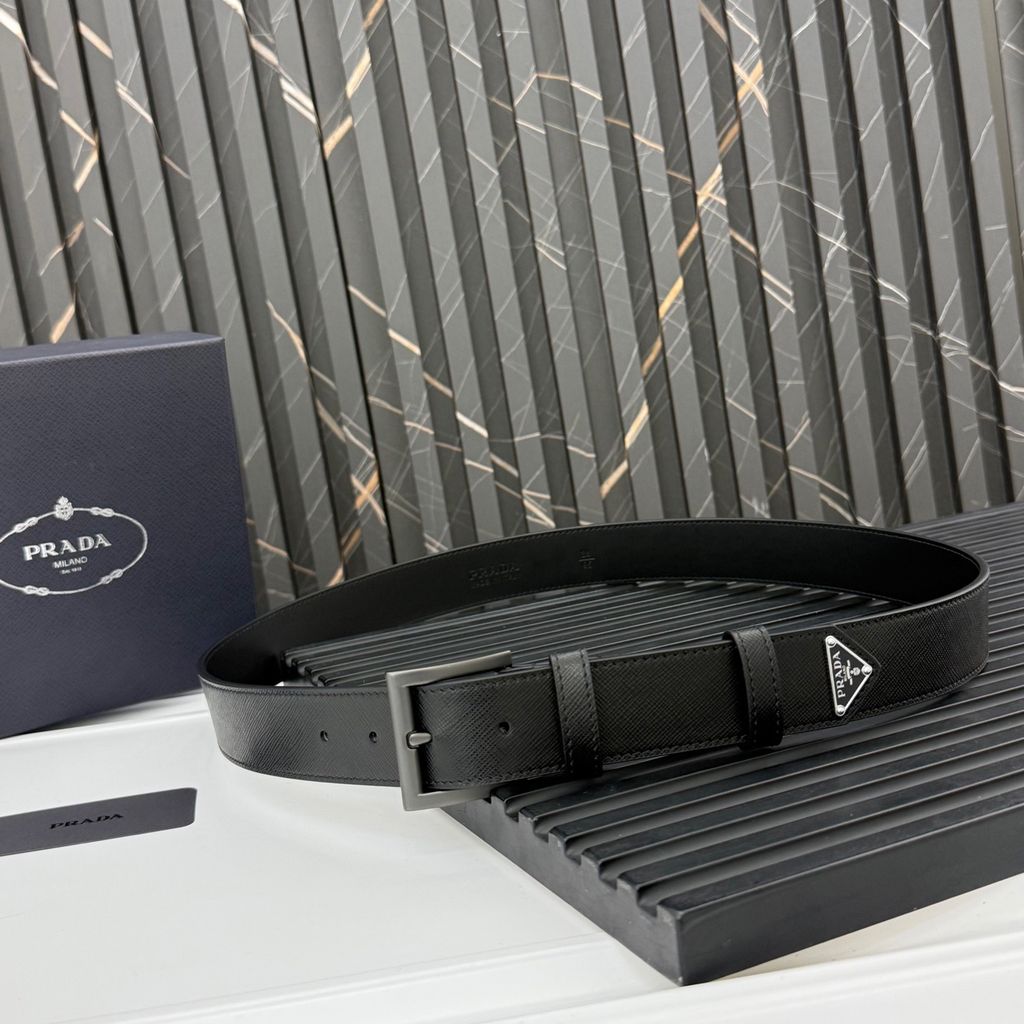 THẮT LƯNG NAM PRD DA SAFFIANO VÂN CHÉO – KHÓA KIM LOẠI TỐI GIẢN, ĐIỂM NHẤN TAM GIÁC MEN SIGNATURE 1250k (HÀNG ORDER QUỐC TẾ)