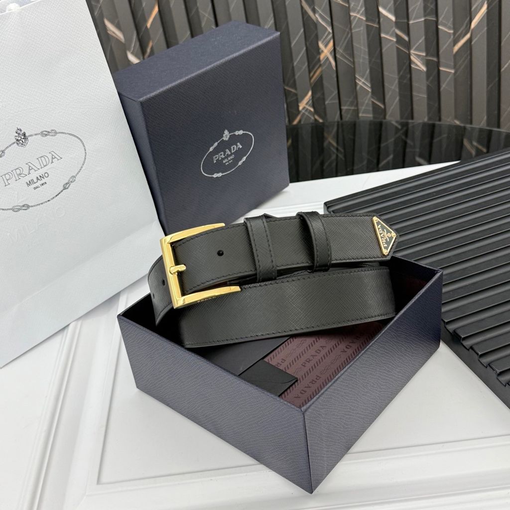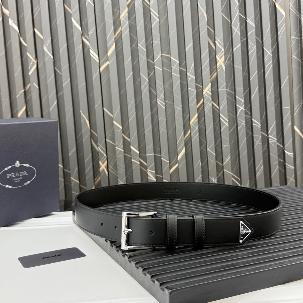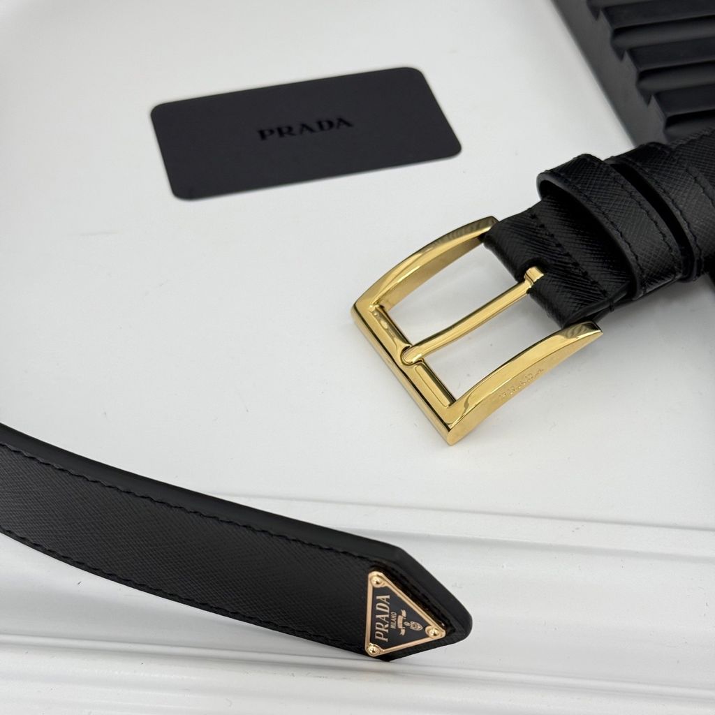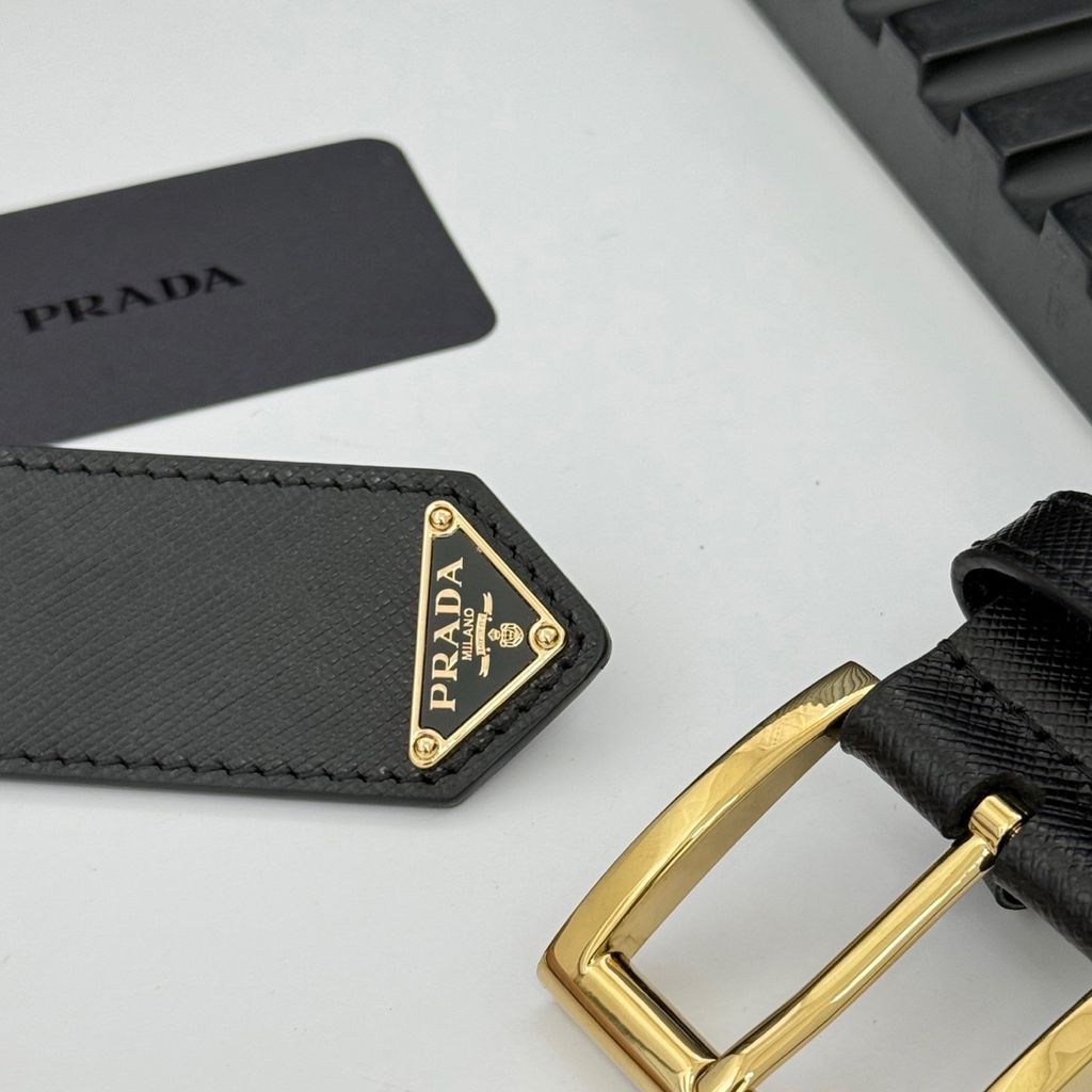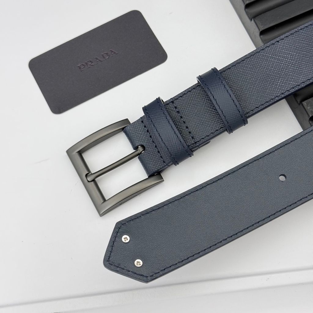 THẮT LƯNG NAM PRD DA SAFFIANO VÂN CHÉO – KHÓA KIM LOẠI TỐI GIẢN, ĐIỂM NHẤN TAM GIÁC MEN SIGNATURE 1250k (HÀNG ORDER QUỐC TẾ)