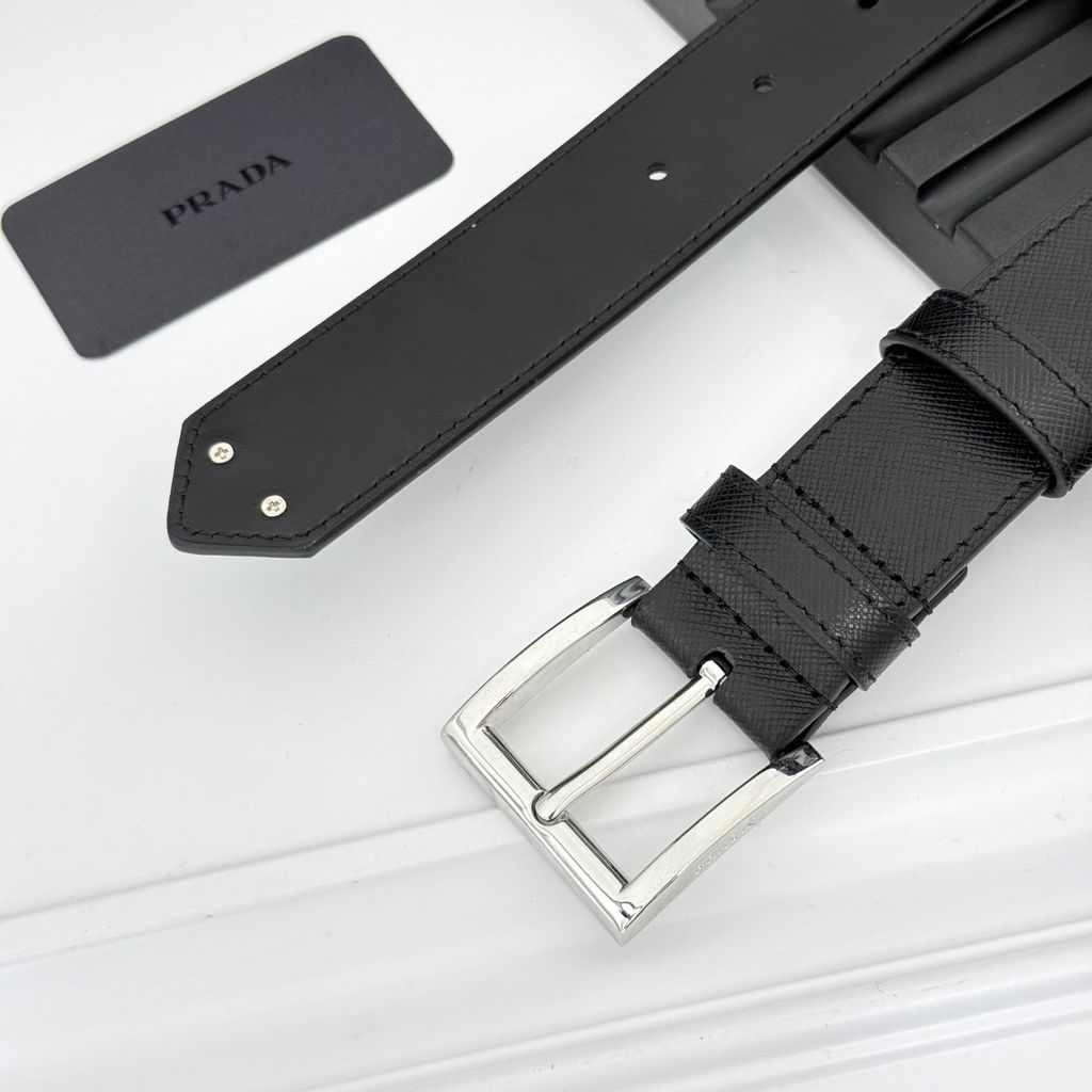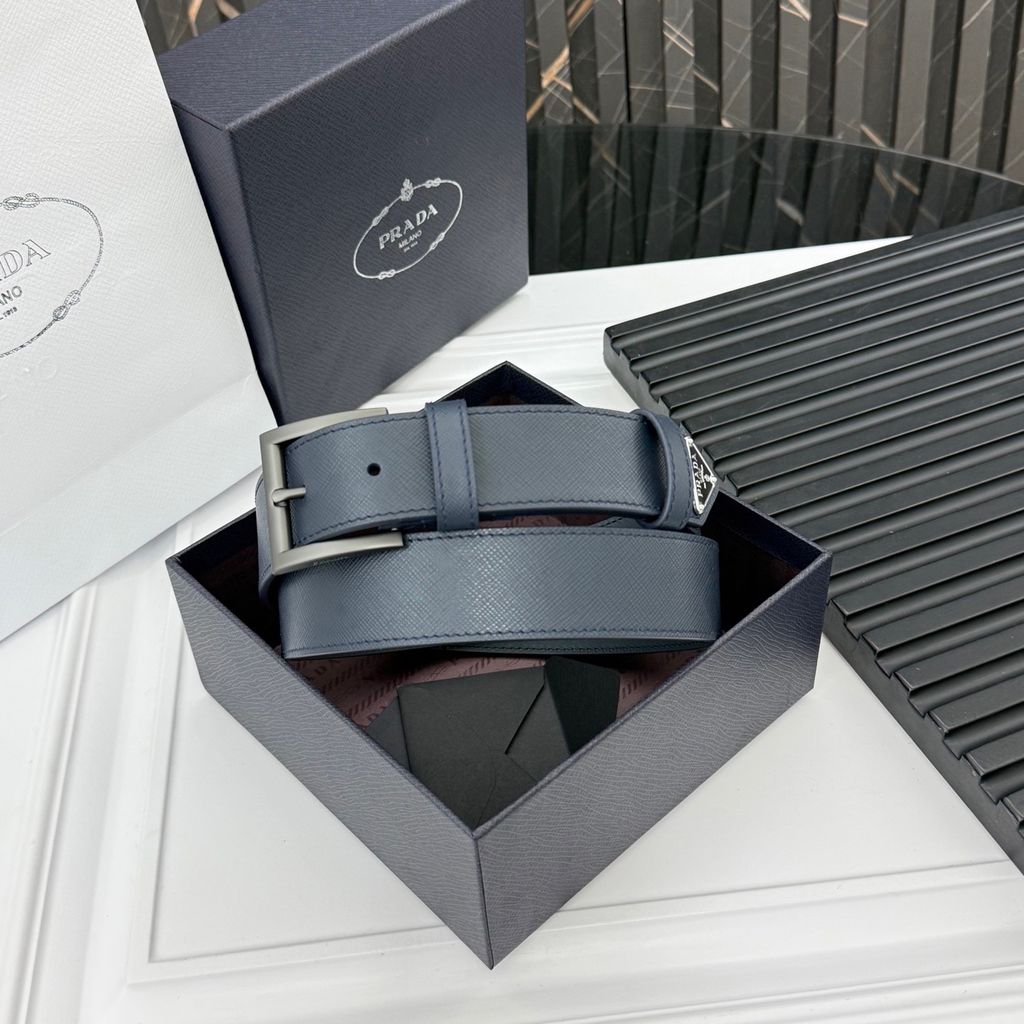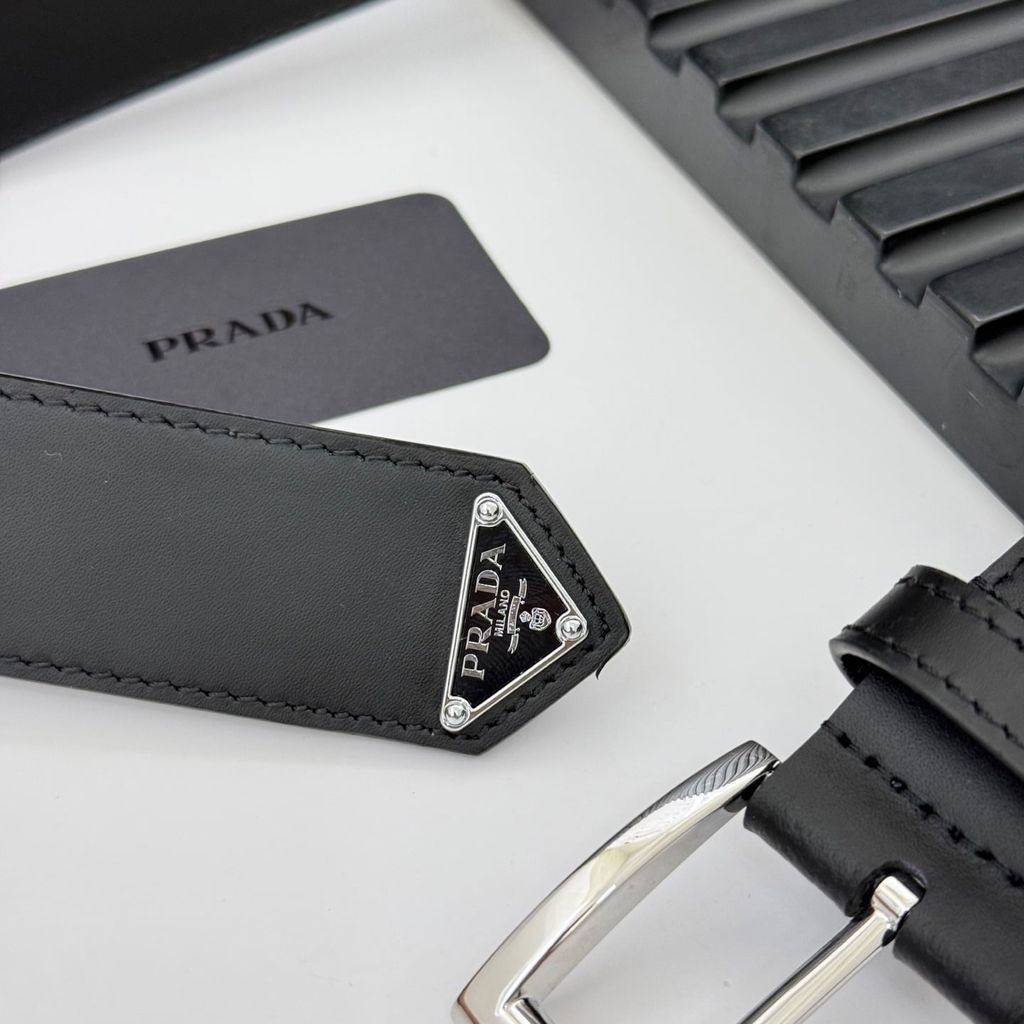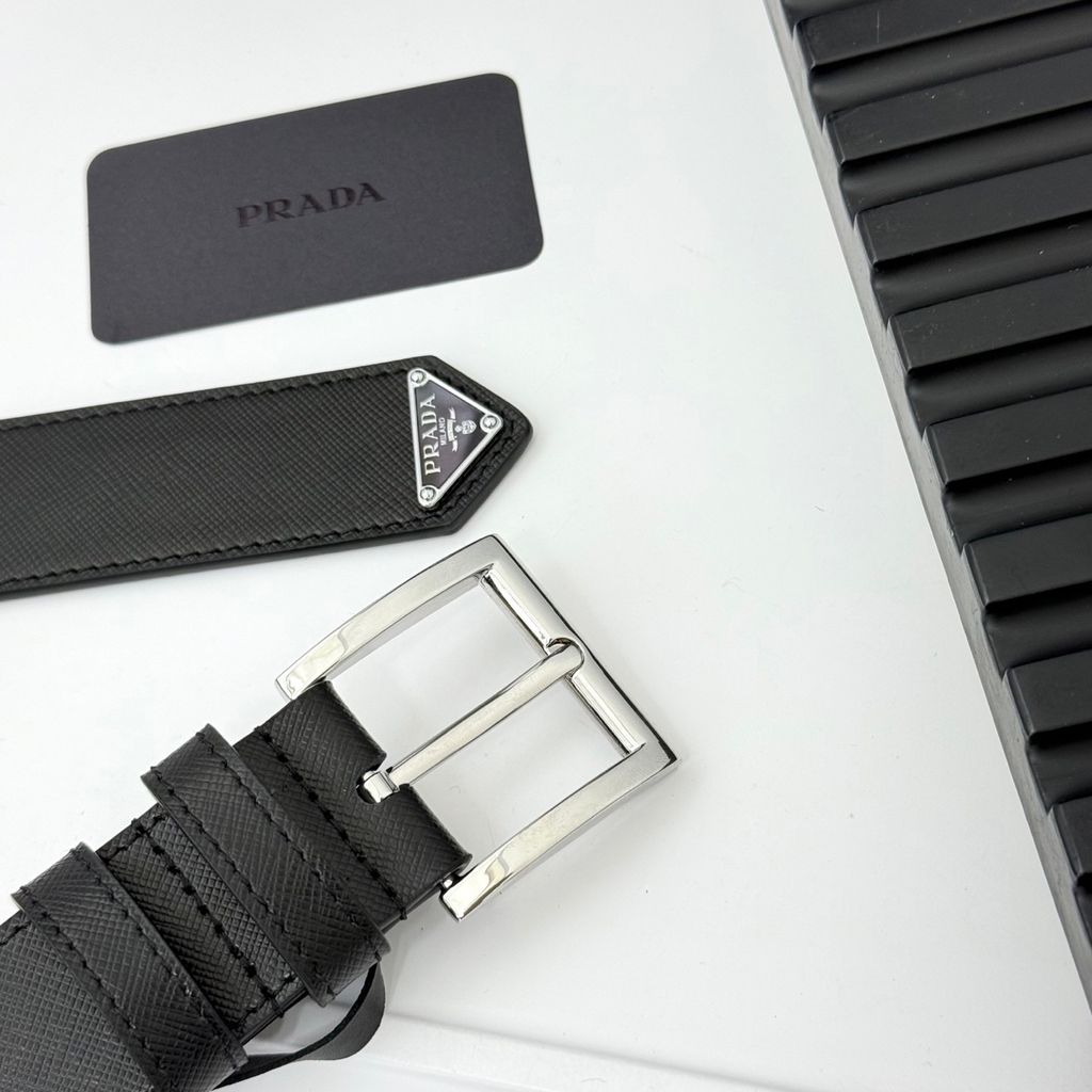 THẮT LƯNG NAM PRD DA SAFFIANO VÂN CHÉO – KHÓA KIM LOẠI TỐI GIẢN, ĐIỂM NHẤN TAM GIÁC MEN SIGNATURE 1250k (HÀNG ORDER QUỐC TẾ)