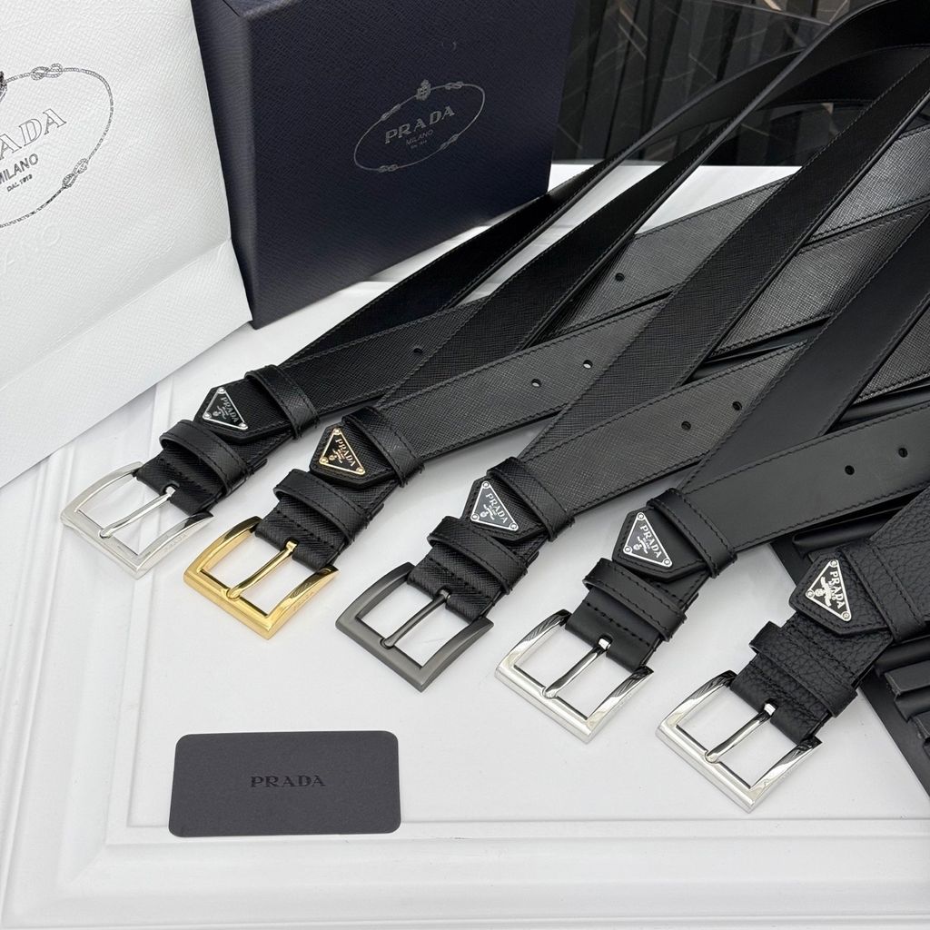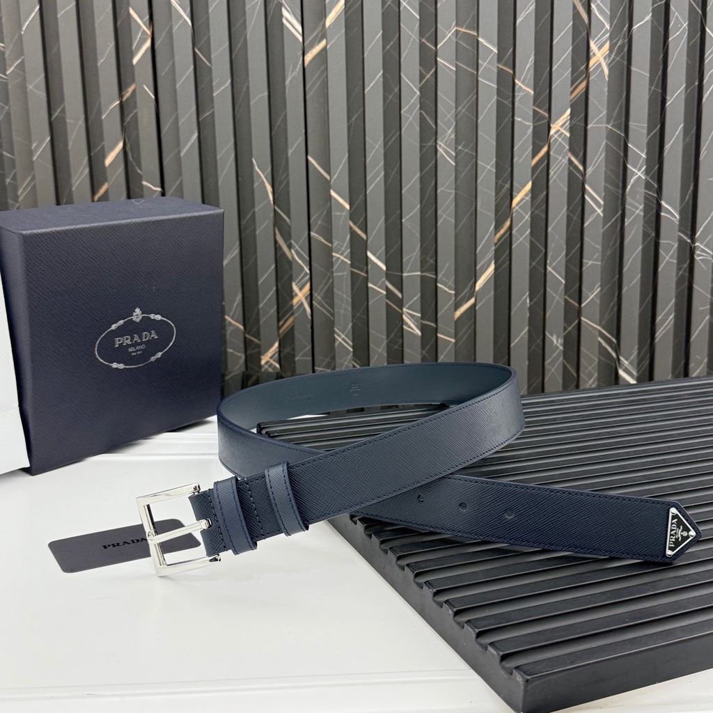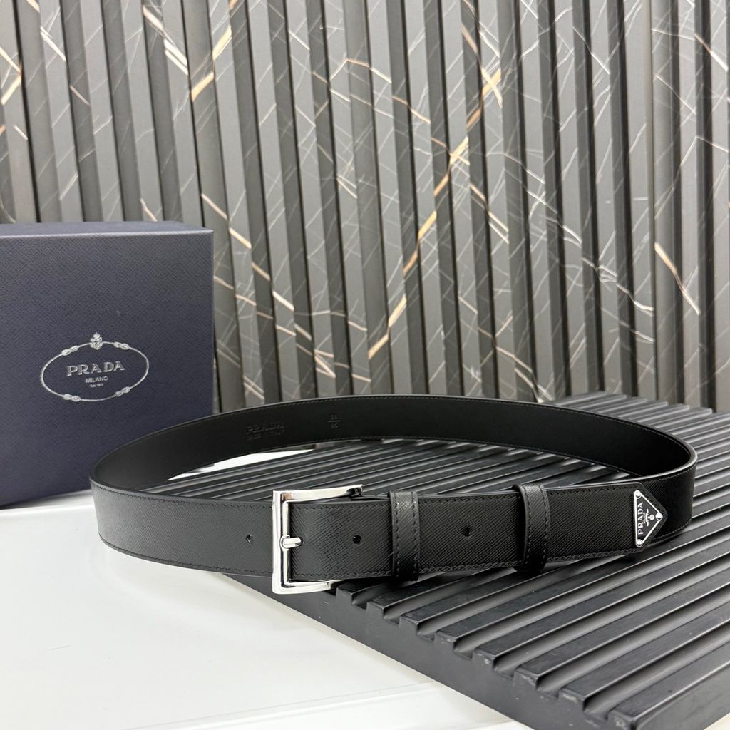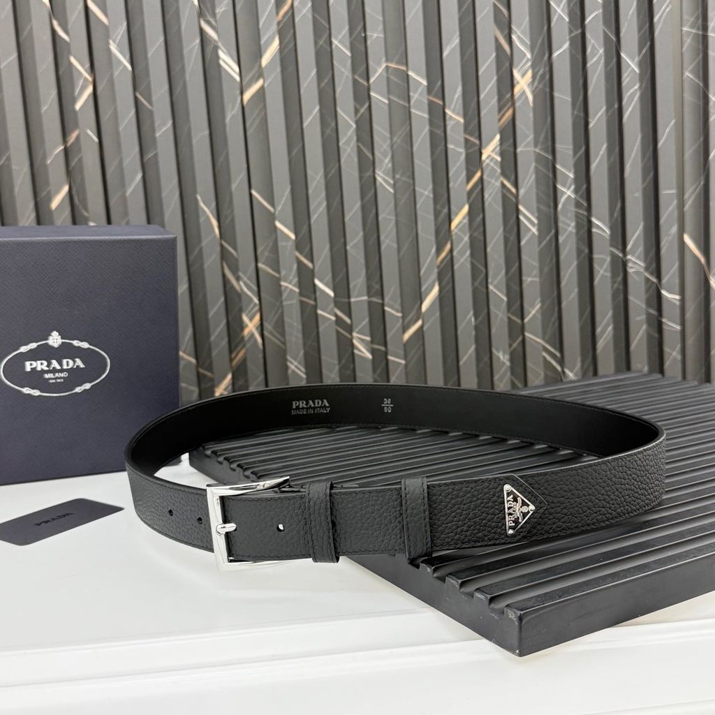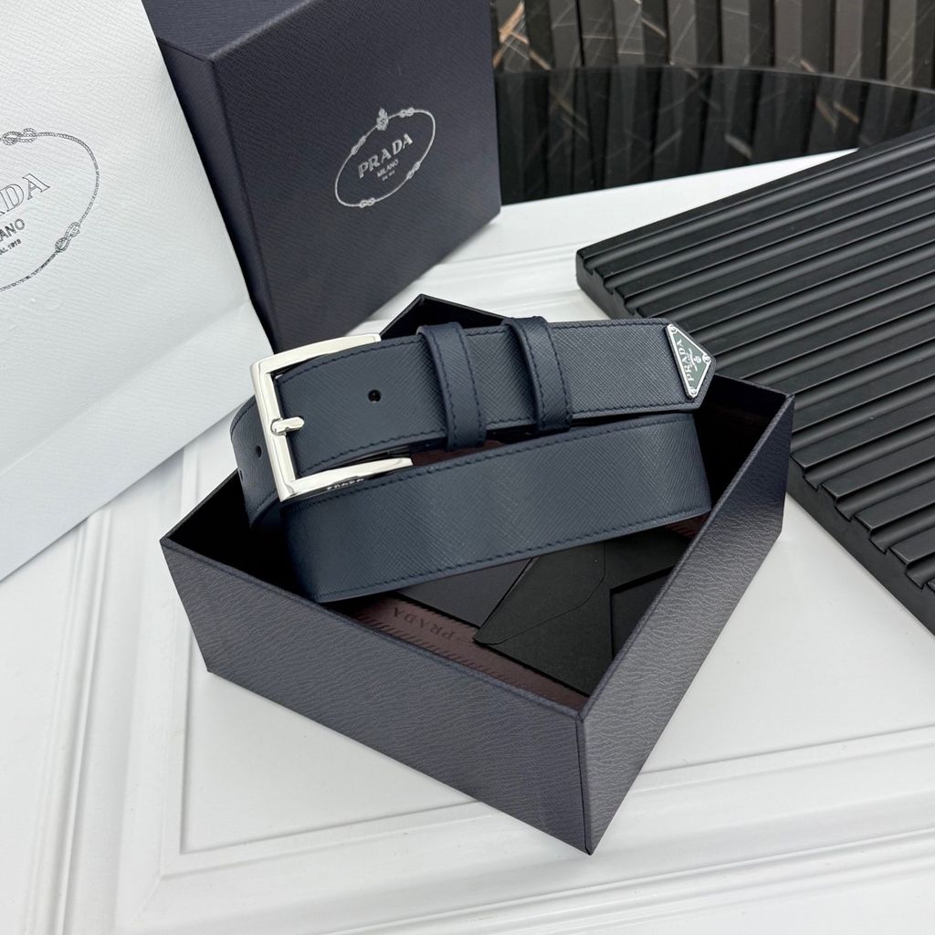 THẮT LƯNG NAM PRD DA SAFFIANO VÂN CHÉO – KHÓA KIM LOẠI TỐI GIẢN, ĐIỂM NHẤN TAM GIÁC MEN SIGNATURE 1250k (HÀNG ORDER QUỐC TẾ)