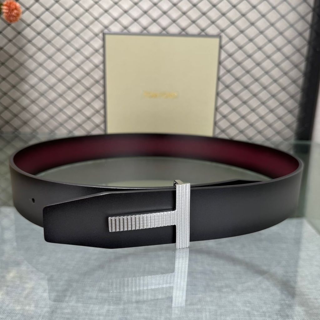 Mang một chiếc thắt lưng gọn gàng mà khí chất, outfit basic cũng lập tức nâng tầm chuẩn quý ông. Mẫu TF* 2 mặt đen – đỏ rượu này đúng kiểu “nhỏ mà có võ”, lên người rất sang và tinh tế.