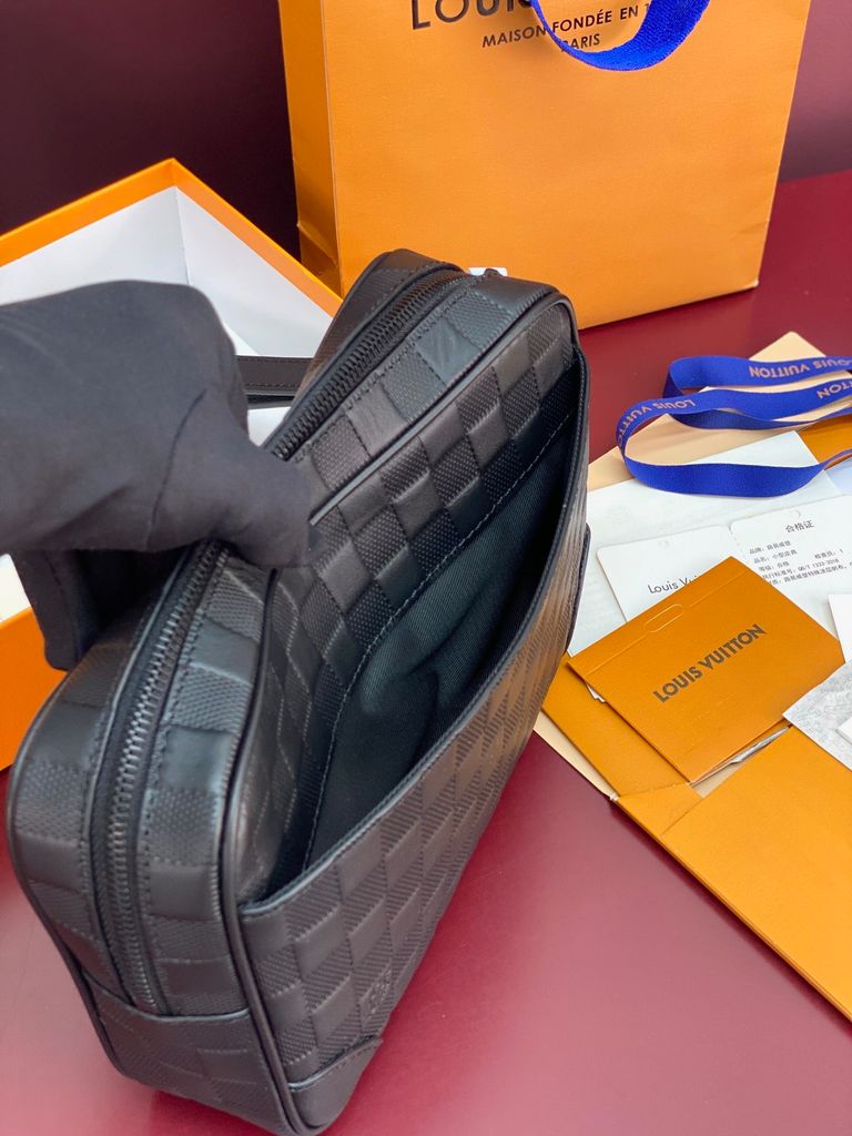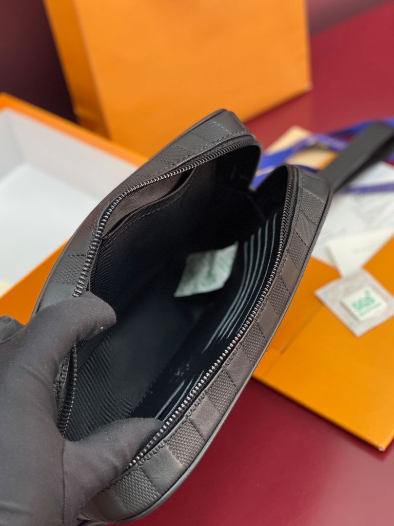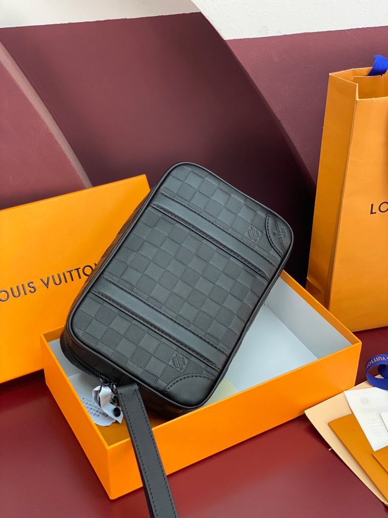 TÚI CẦM TAY NAM NỮ L V – DA BÒ DẬP VÂN NỔI CARO, PHOM CLUTCH GỌN SANG 2800k (HÀNG ORDER QUỐC TẾ)