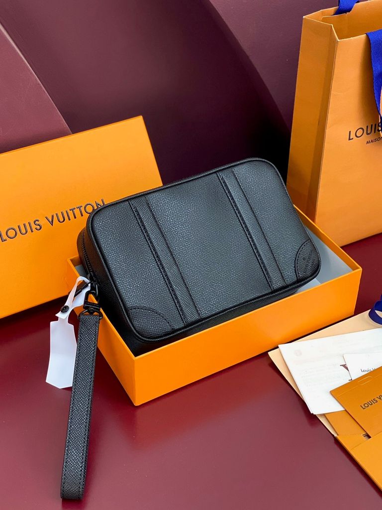 TÚI CẦM TAY NAM NỮ L V POCHETTE KASAI DAMIER GRAPHITE – DA BÒ VÂN SẦN SANG TRỌNG, FORM KASAI GỌN ĐẸP 2700k (HÀNG ORDER QUỐC TẾ)