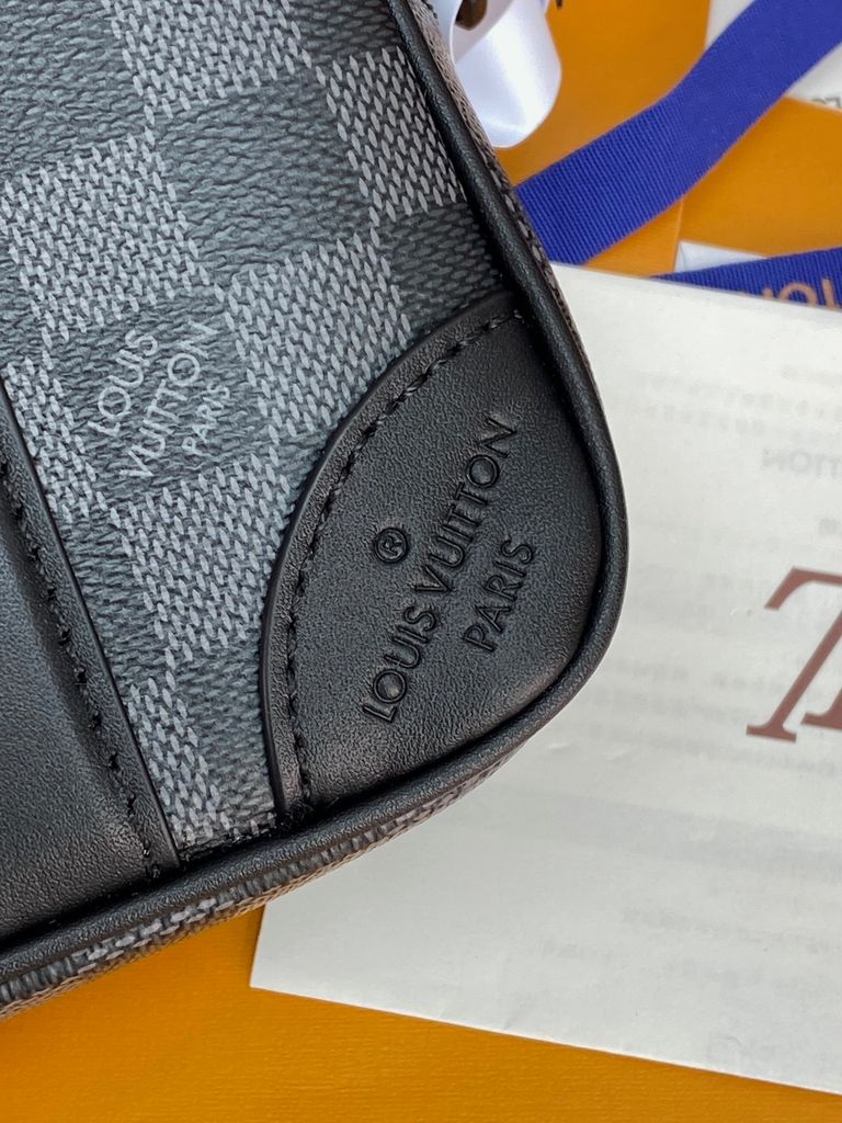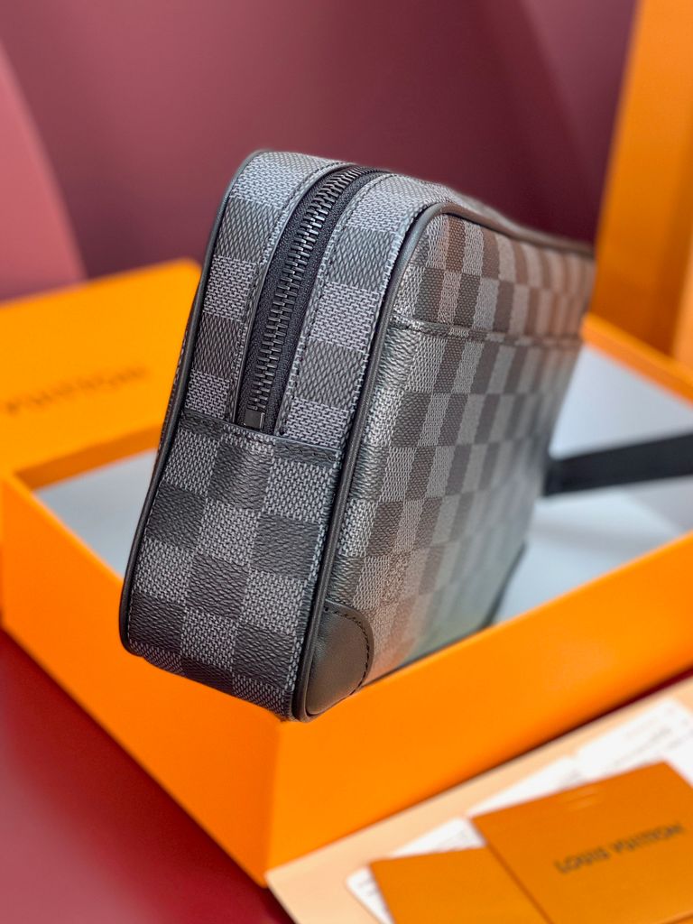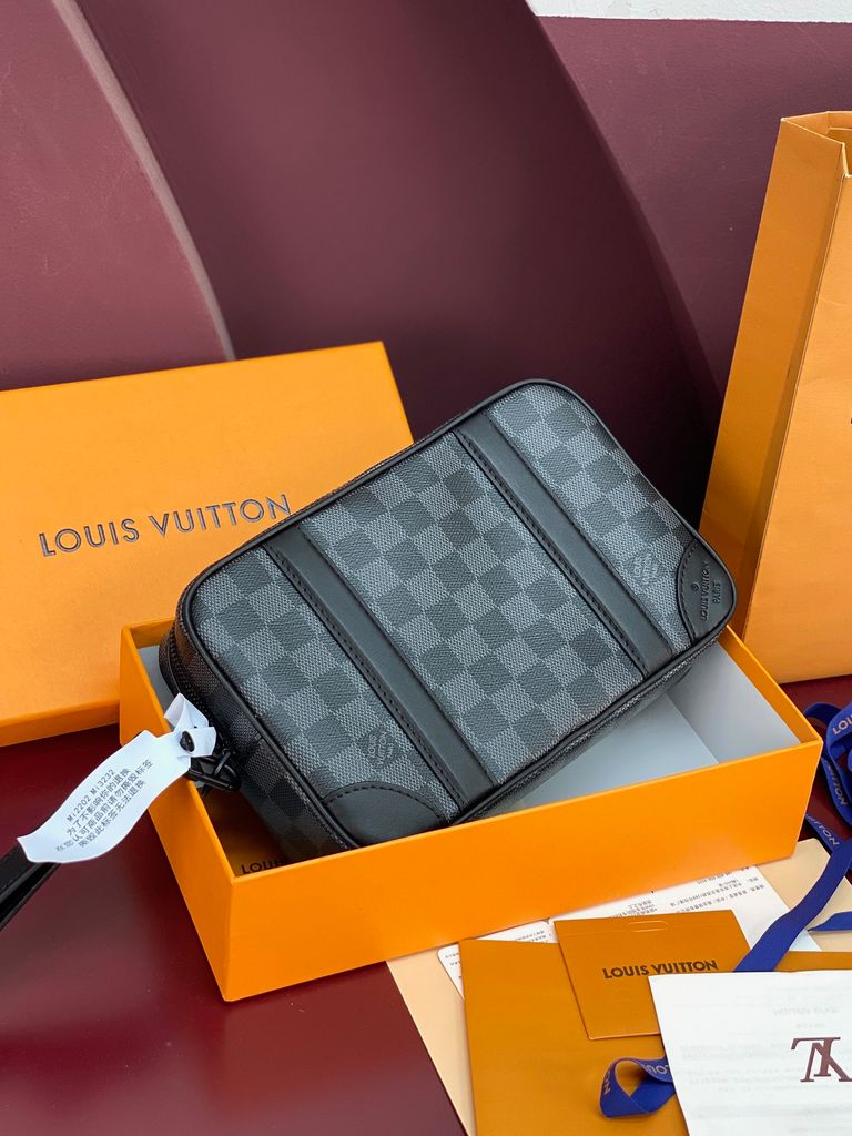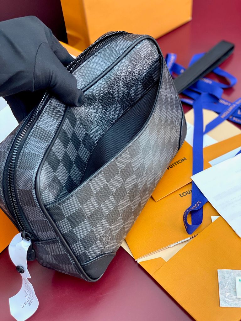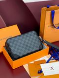 TÚI CẦM TAY NAM NỮ L V POCHETTE KASAI HOẠ TIẾT DAMIER GRAPHITE – FORM HỘP GỌN GÀNG, DÂY ĐEO TAY THÁO RỜI 2500k (HÀNG ORDER QUỐC TẾ)