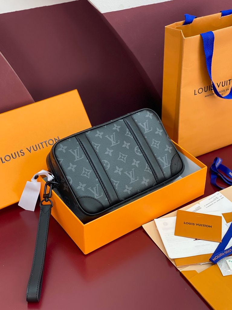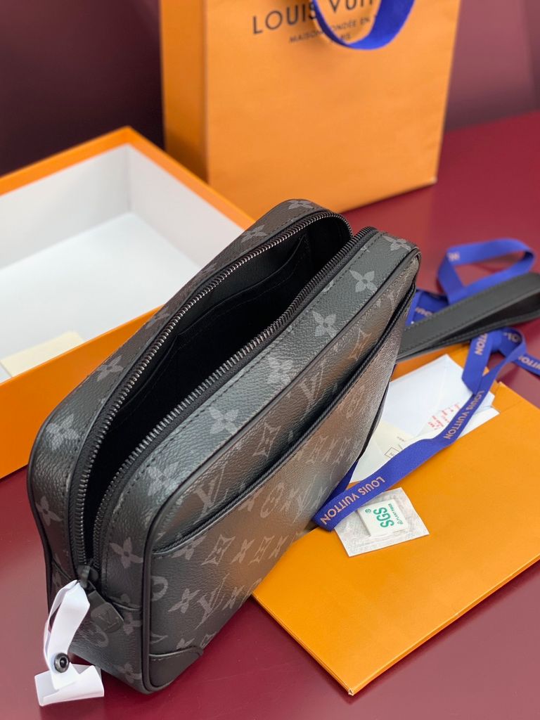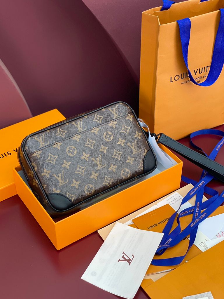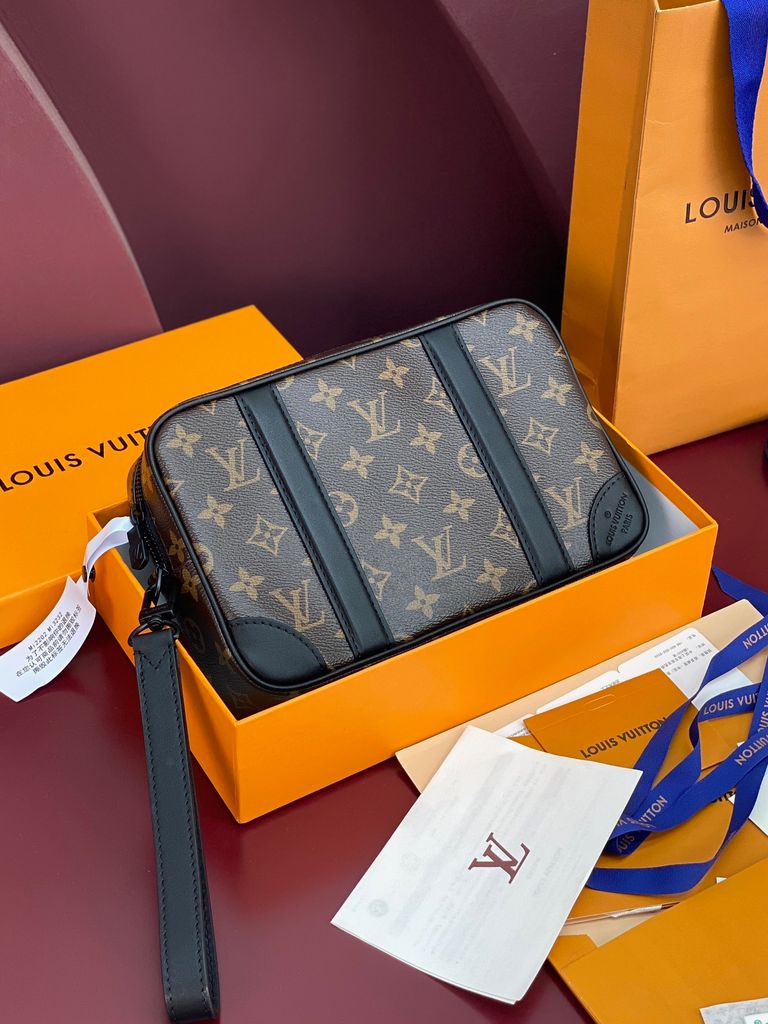 TÚI CẦM TAY NAM NỮ L V POCHETTE KASAI MONOGRAM BIỂU TƯỢNG – PHOM GỌN SANG, ĐEO CỔ TAY LINH HOẠT 2500K (HÀNG ORDER QUỐC TẾ)