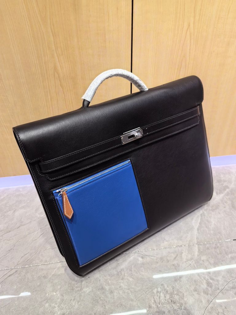 TÚI CẶP NAM NỮ H KELLY DEPECHES EVERCOLOR ĐEN PHỐI XANH 36CM (HÀNG ORDER QUỐC TẾ)