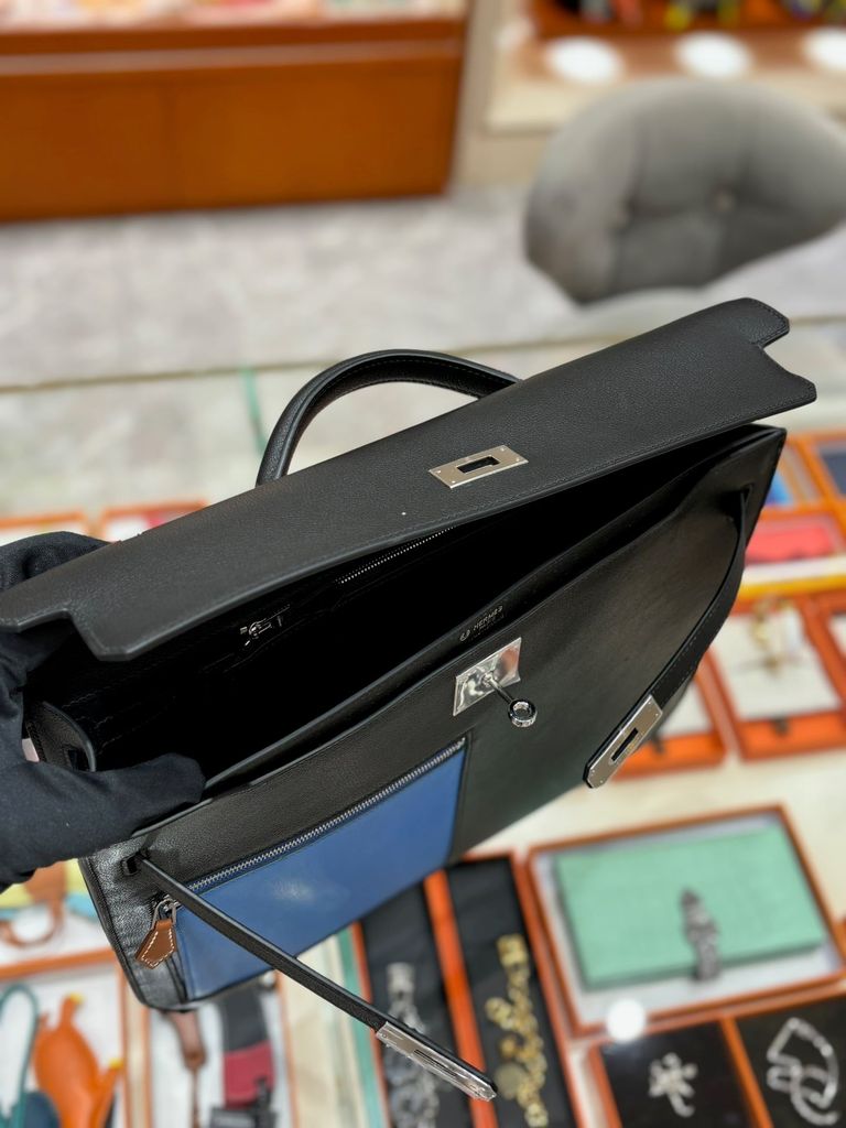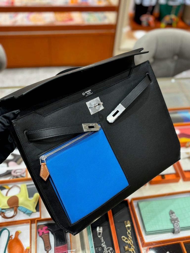 TÚI CẶP NAM NỮ H KELLY DEPECHES EVERCOLOR ĐEN PHỐI XANH 36CM (HÀNG ORDER QUỐC TẾ)