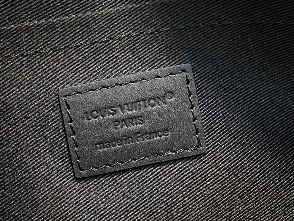 • Phụ kiện kim loại phủ đen mờ đồng bộ với tổng thể túi, logo LV nổi bật trên khoá móc.