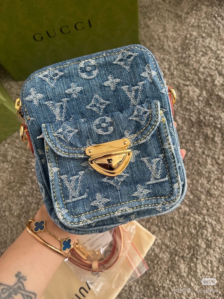 TÚI ĐEO CHÉO NAM NỮ L V FAIRFAX POCHETTE MONOGRAM DENIM – KHÓA HOUSE SIGNATURE, PHOM MINI GỌN SANG (HÀNG ORDER QUỐC TẾ)