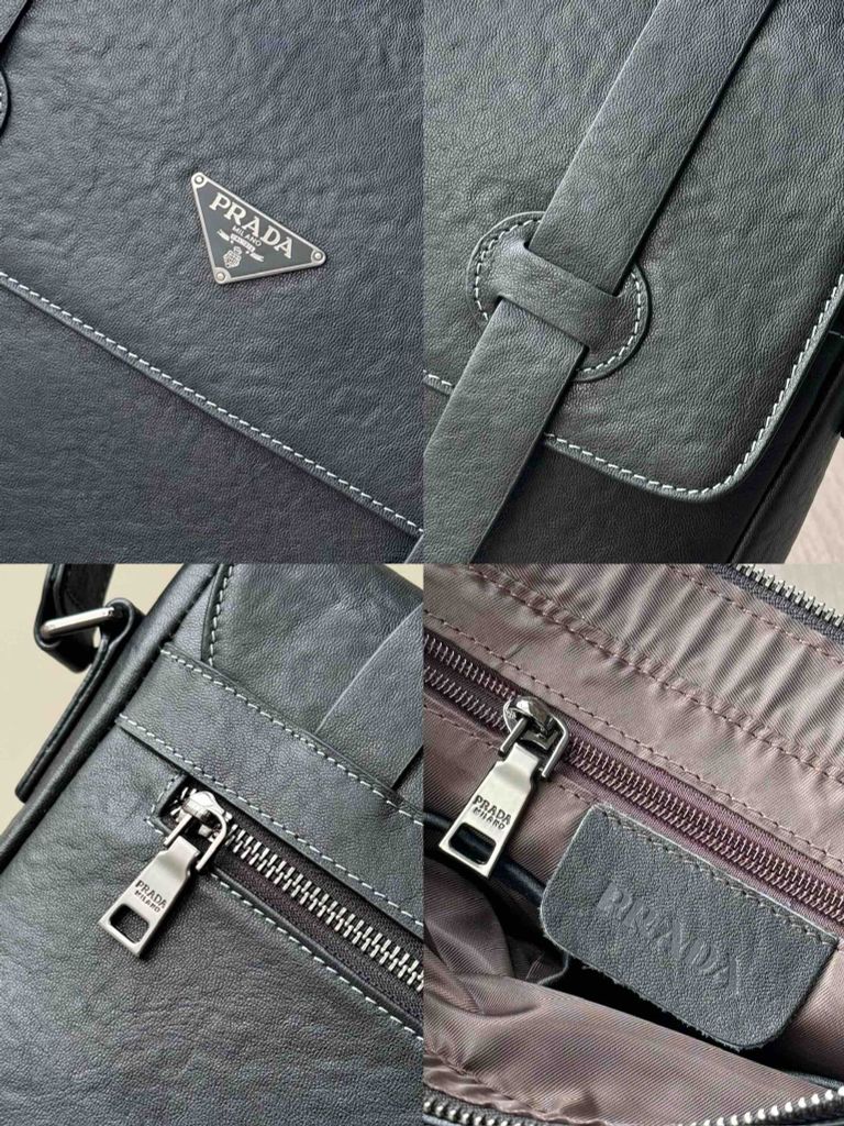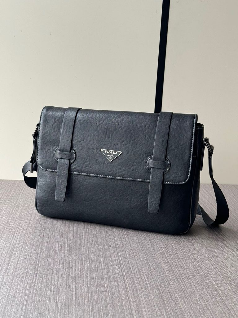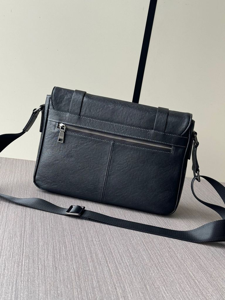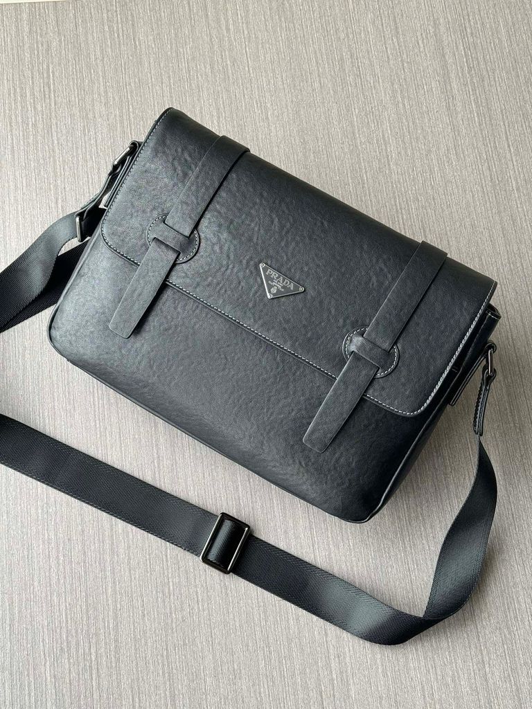TÚI ĐEO CHÉO NAM PR**A DA BÒ VÂN ĐEN CAO CẤP* 2700k (HÀNG ORDER QUỐC TẾ)