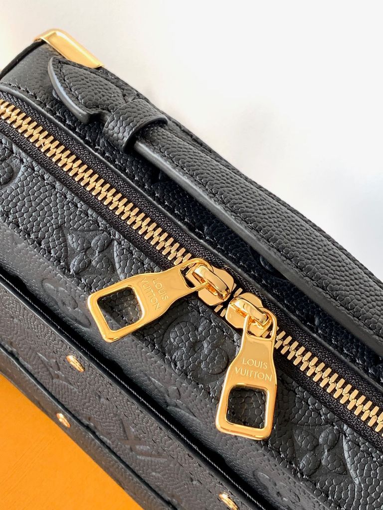 • Chất liệu chính là da bò mềm vân hạt, bề mặt dập Monogram sắc nét, lên form đẹp và tạo cảm giác cao cấp