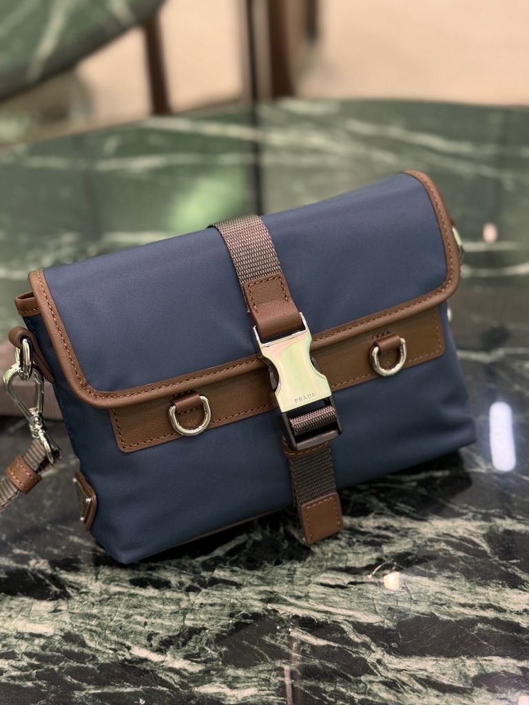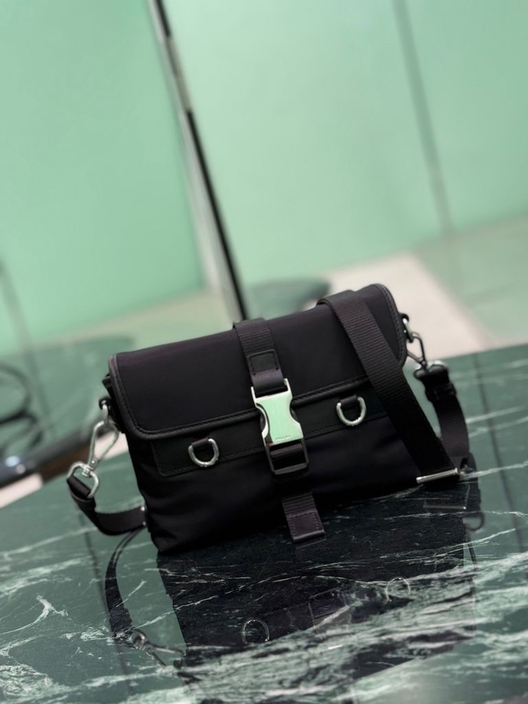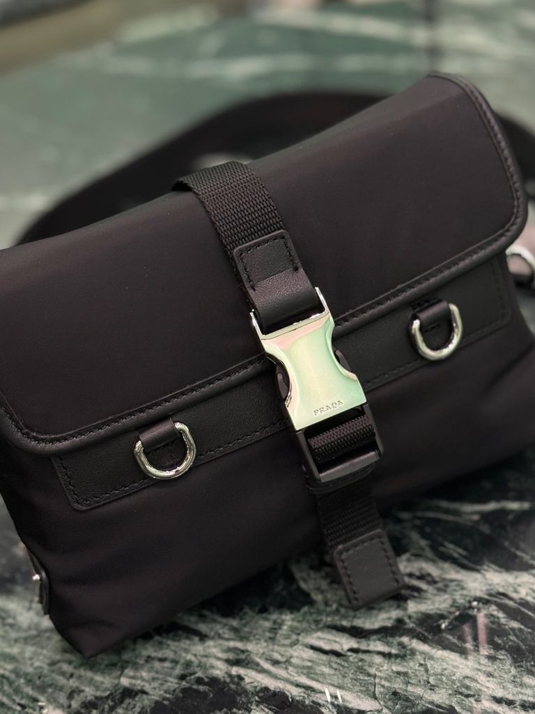 TÚI ĐIỆN THOẠI NAM PRAD* RE-NYLON DA BÒ KHÓA TAM GIÁC ICONIC DÂY ĐEO VAI THỜI THƯỢNG 2550k (HÀNG ORDER QUỐC TẾ)